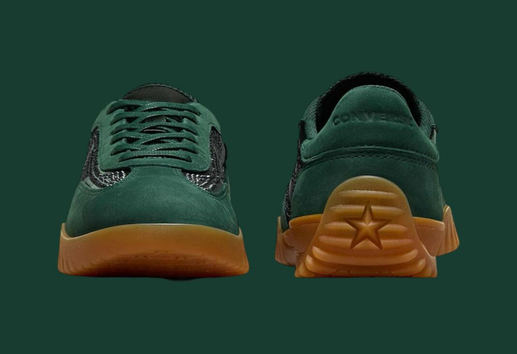 不过鞋型选择了较为冷门的 Run Star Trainer,外观配色方面以松石绿覆盖,带来更浓郁的贵族气息。