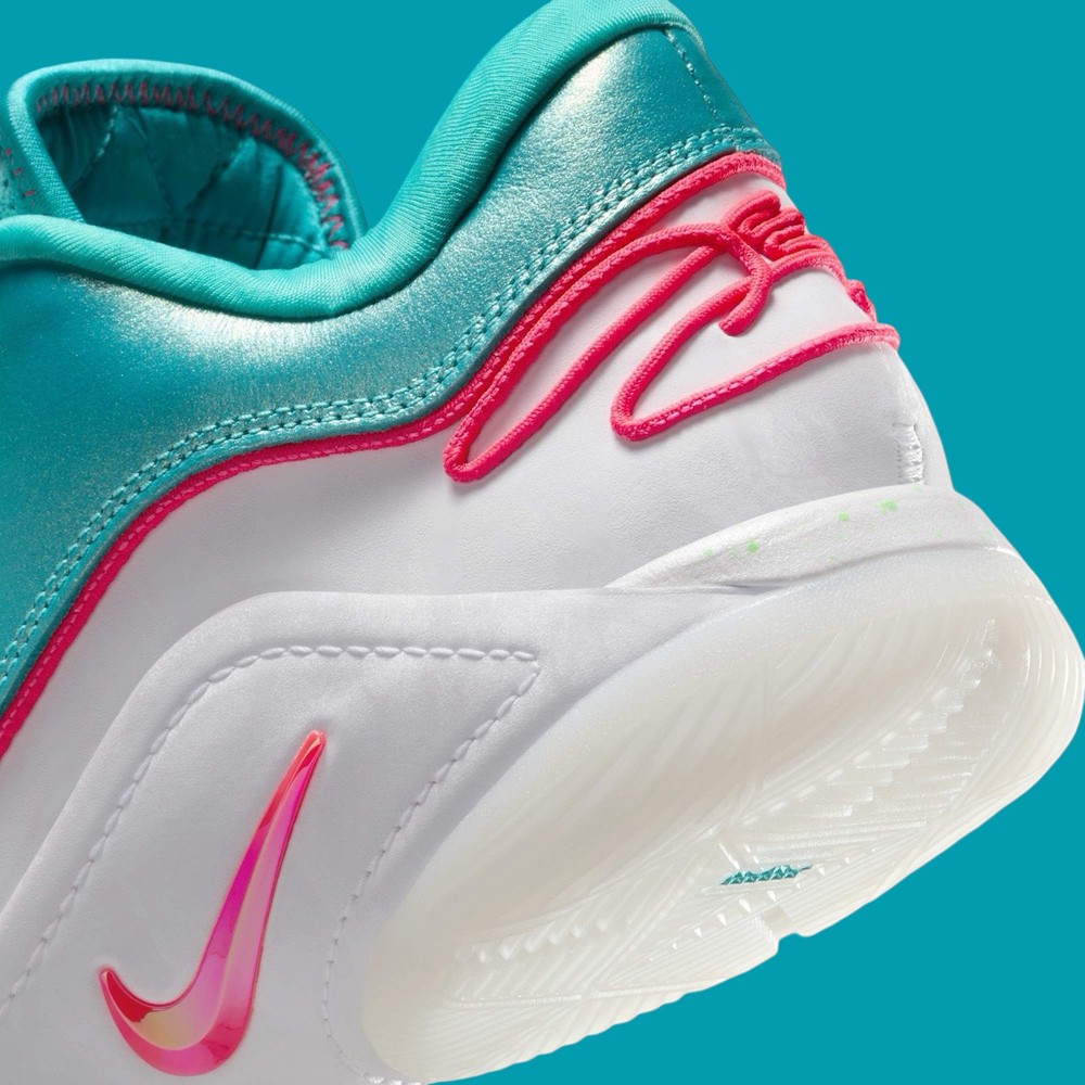 本次最大亮点无疑是变色油墨质感的红绿鸳鸯鞋身,在不同角度下释放出别样的光泽色彩。