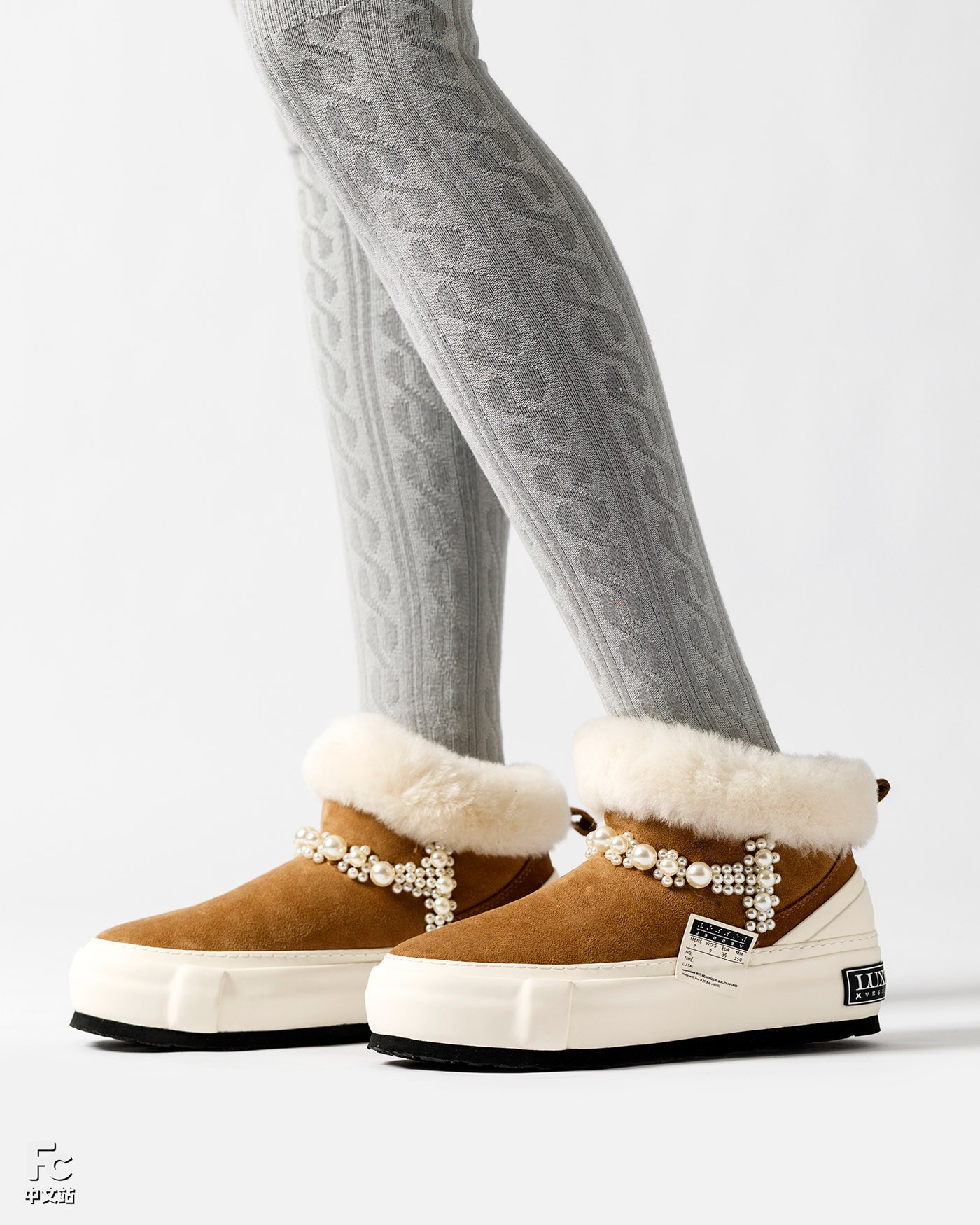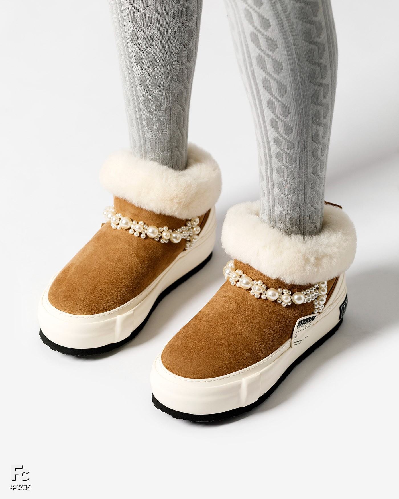 沿袭了雪地靴的常规造型,珍珠细节的装饰则更显奢华效果。