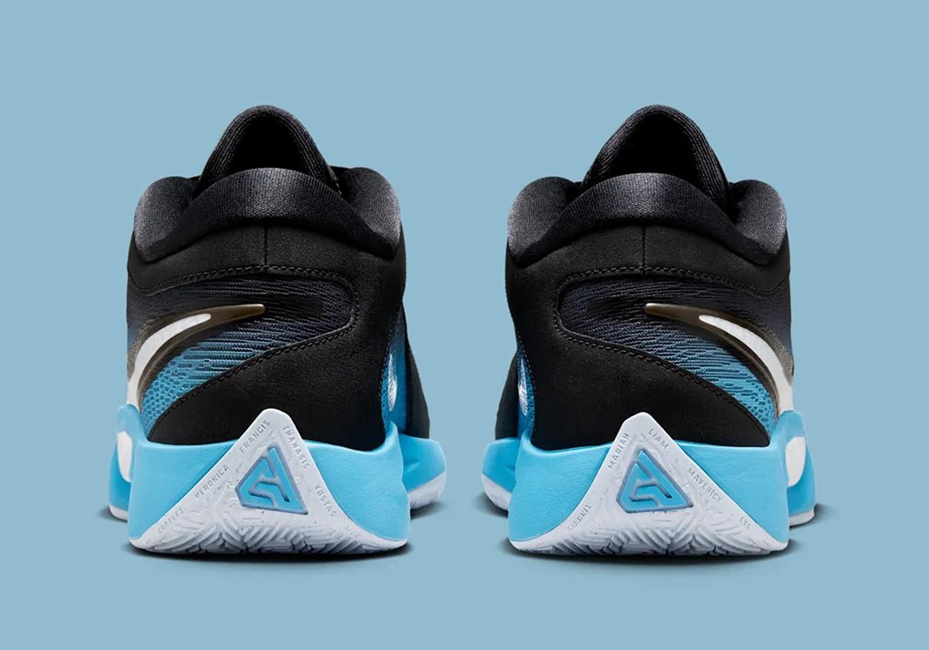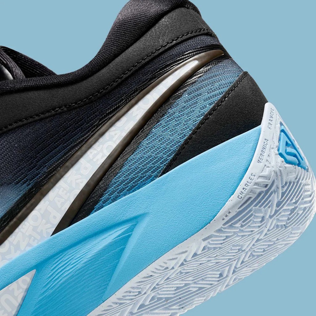 鞋面渐变蓝色既代表冬日寒冰,又呼应了字母哥祖国希腊的国旗配色。