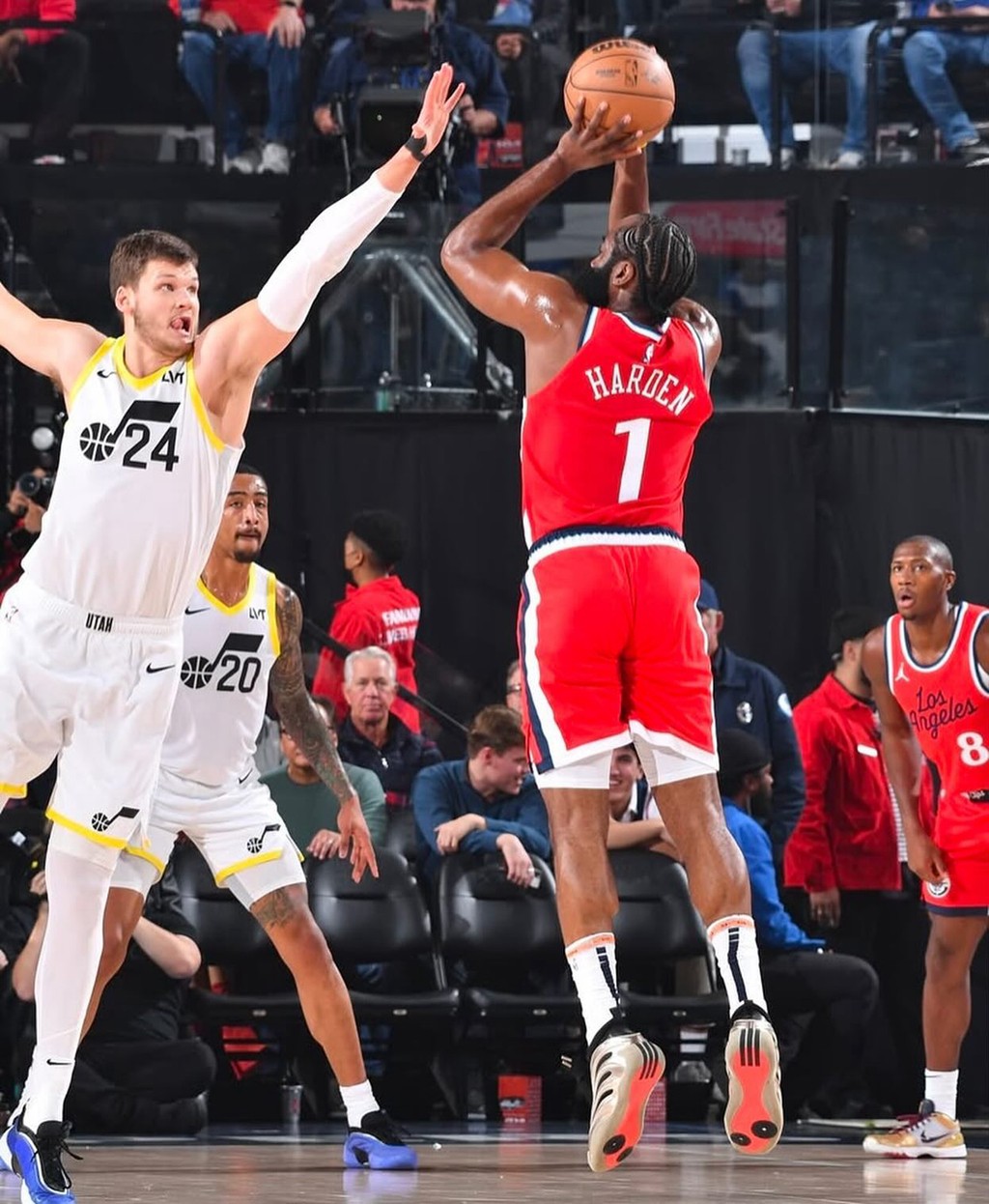 或许是穿新鞋有魔力加持,哈登昨天打出了近一年的最强一战。