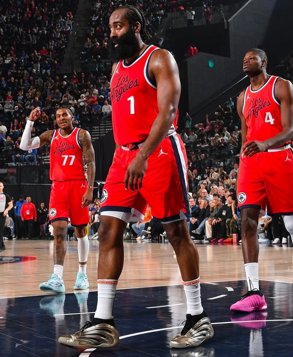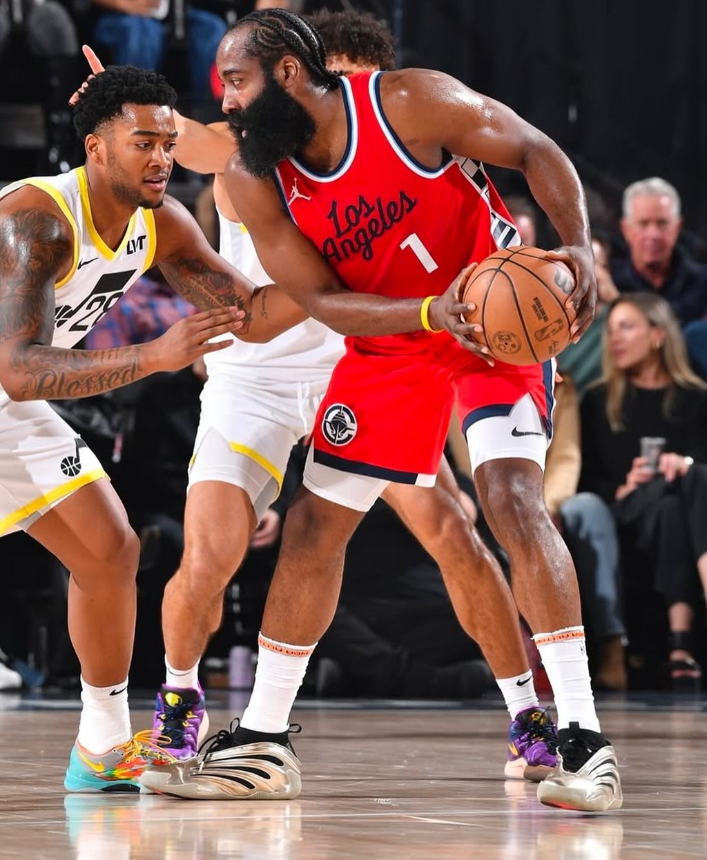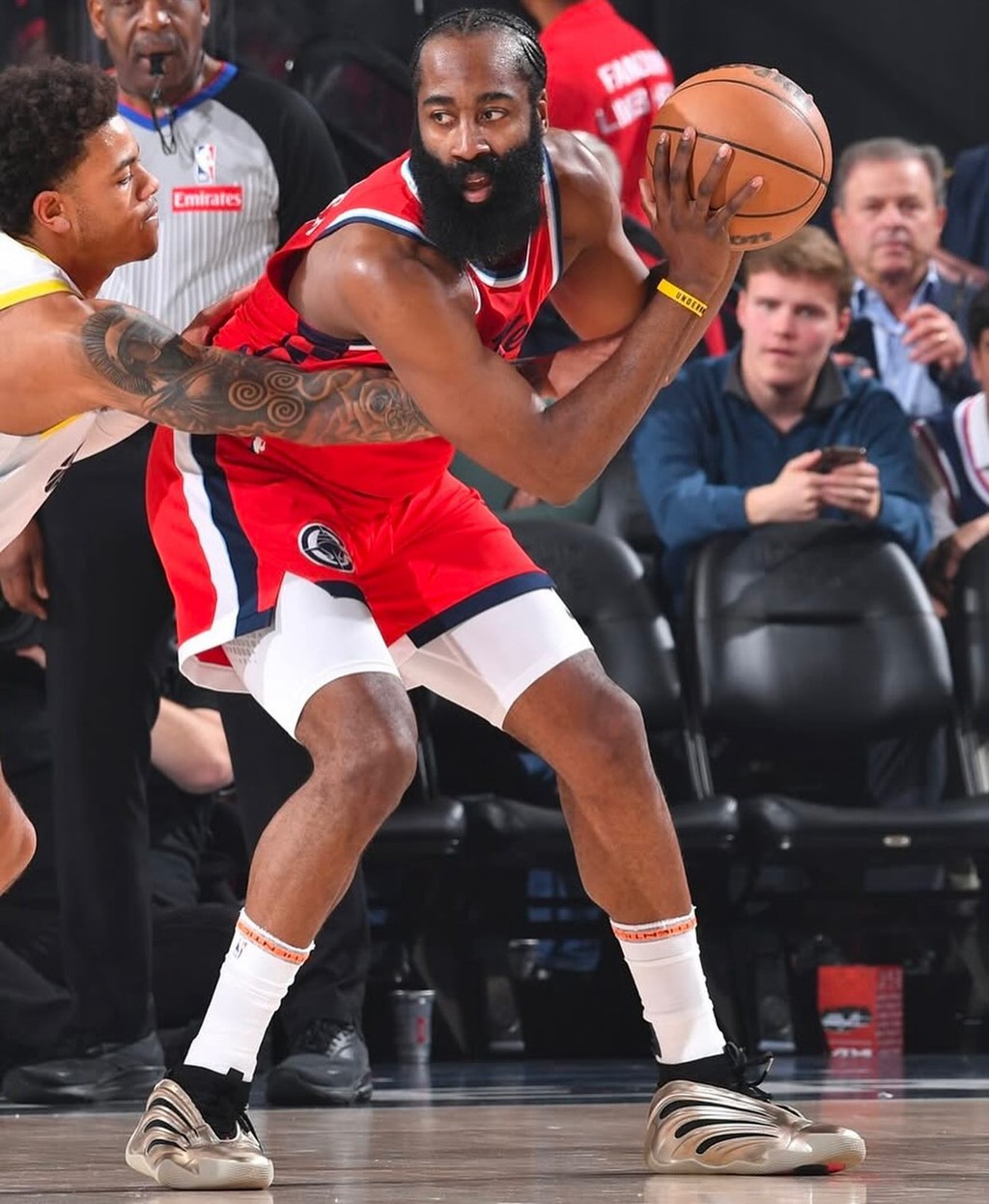 与此同时哈登也完成了新战靴的 NBA 赛场首秀,不少媒体镜头都对准了这双新鞋。