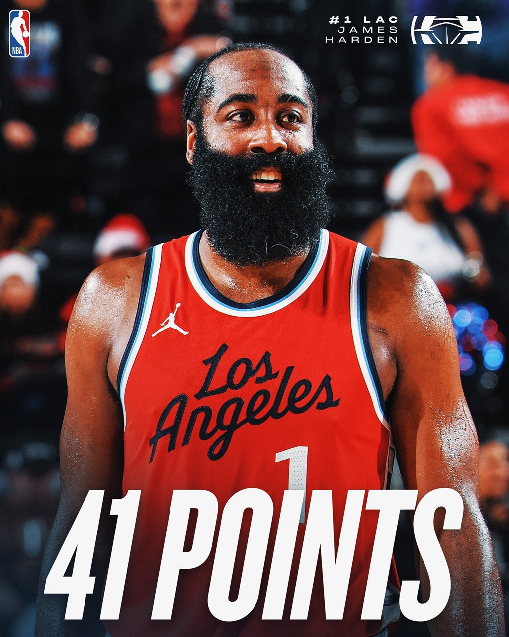 仅用 30 分钟时间就超高效砍下 41 分,并且率队大胜对手,一夜之间梦回 “火箭登”。