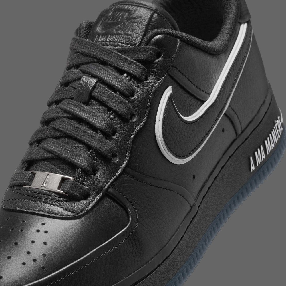 内衬部分延续 AMM 标志性的雕花纹理,而 AF1 经典的中底刻字也由 A Ma Maniere 替代,彰显出优雅鲜明的联名身份。