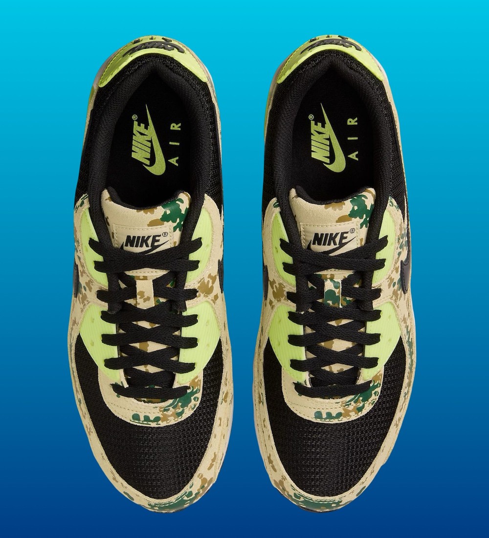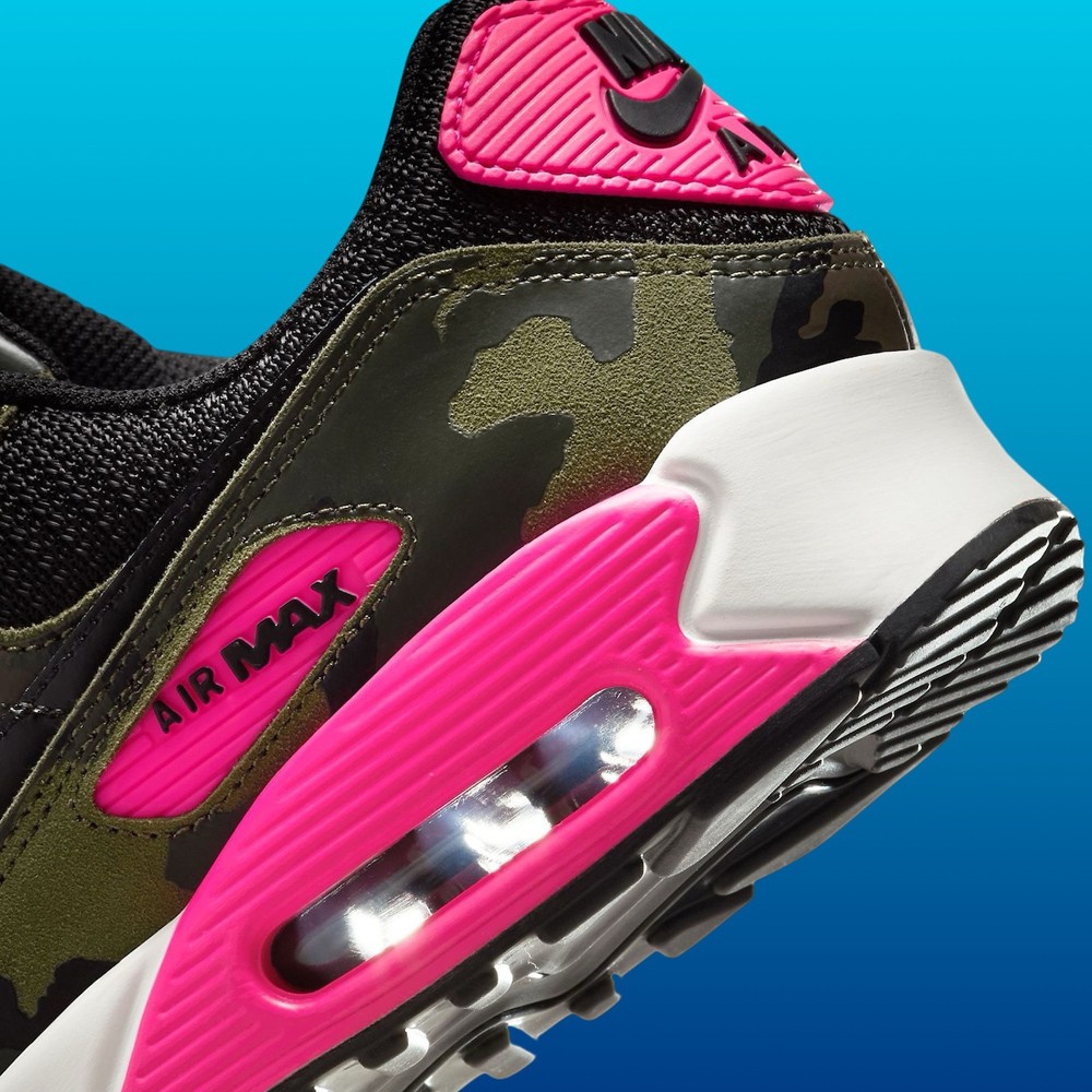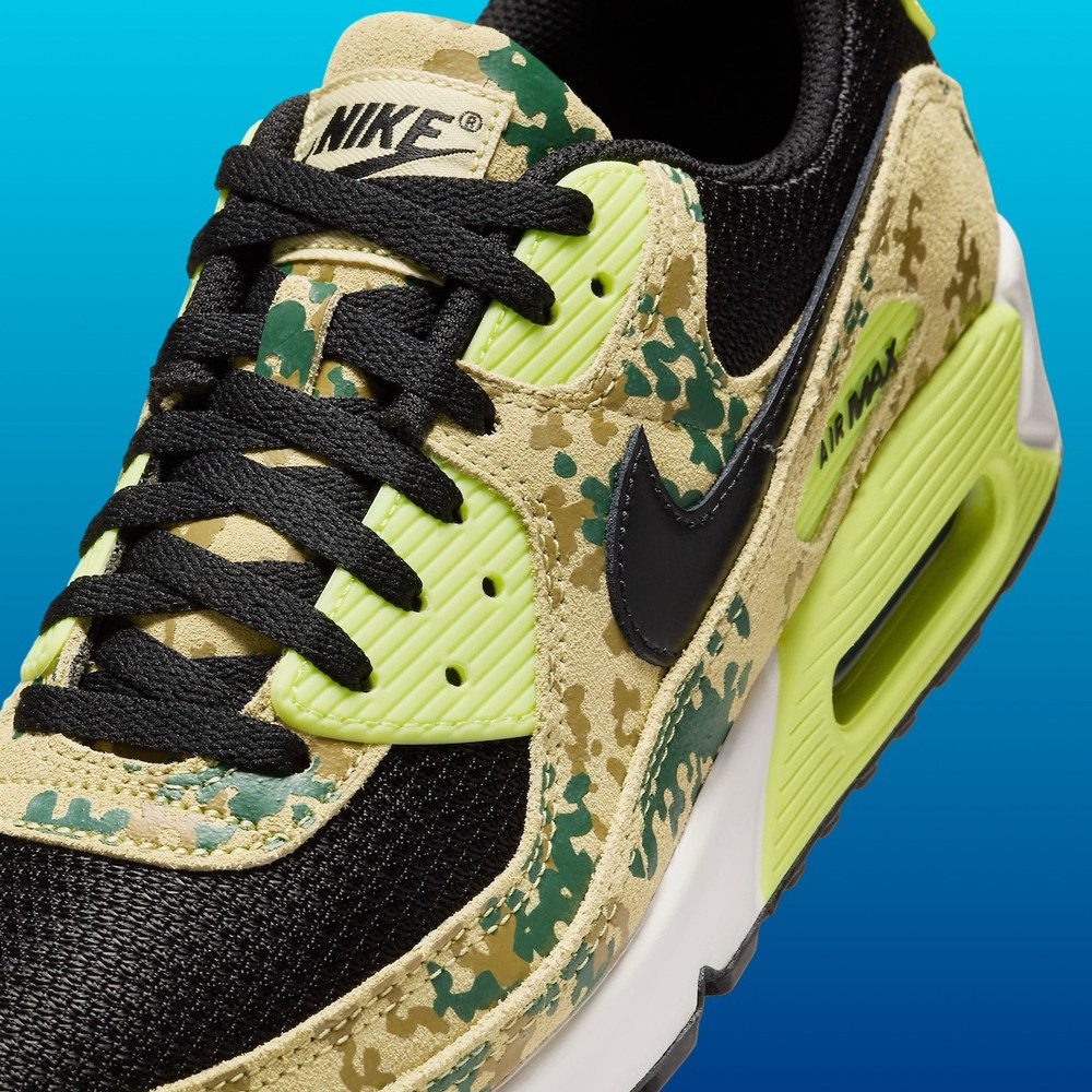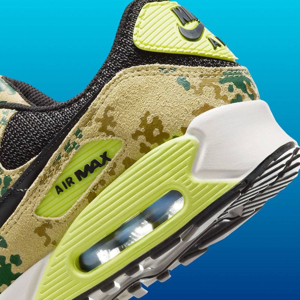 通过三种不同构色的迷彩设定,注入复古格调的 Air Max 90 之上。