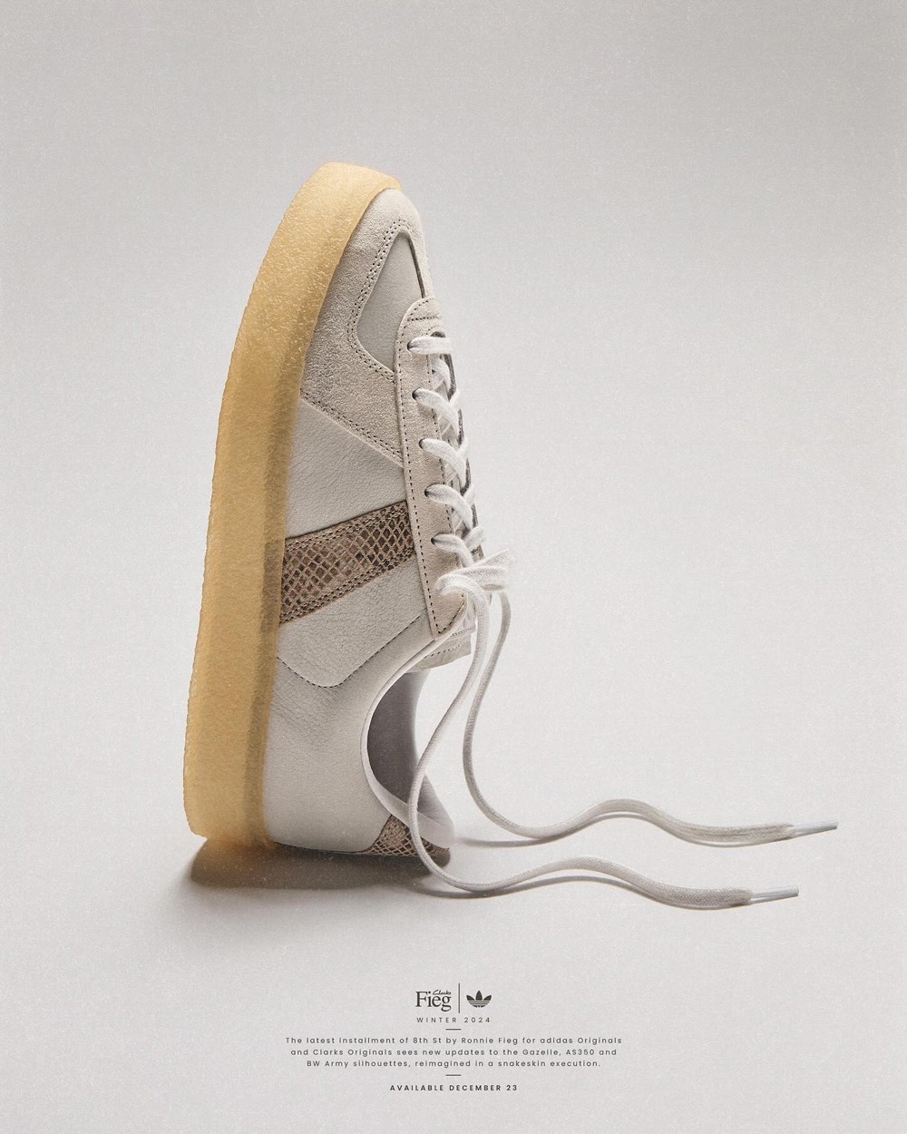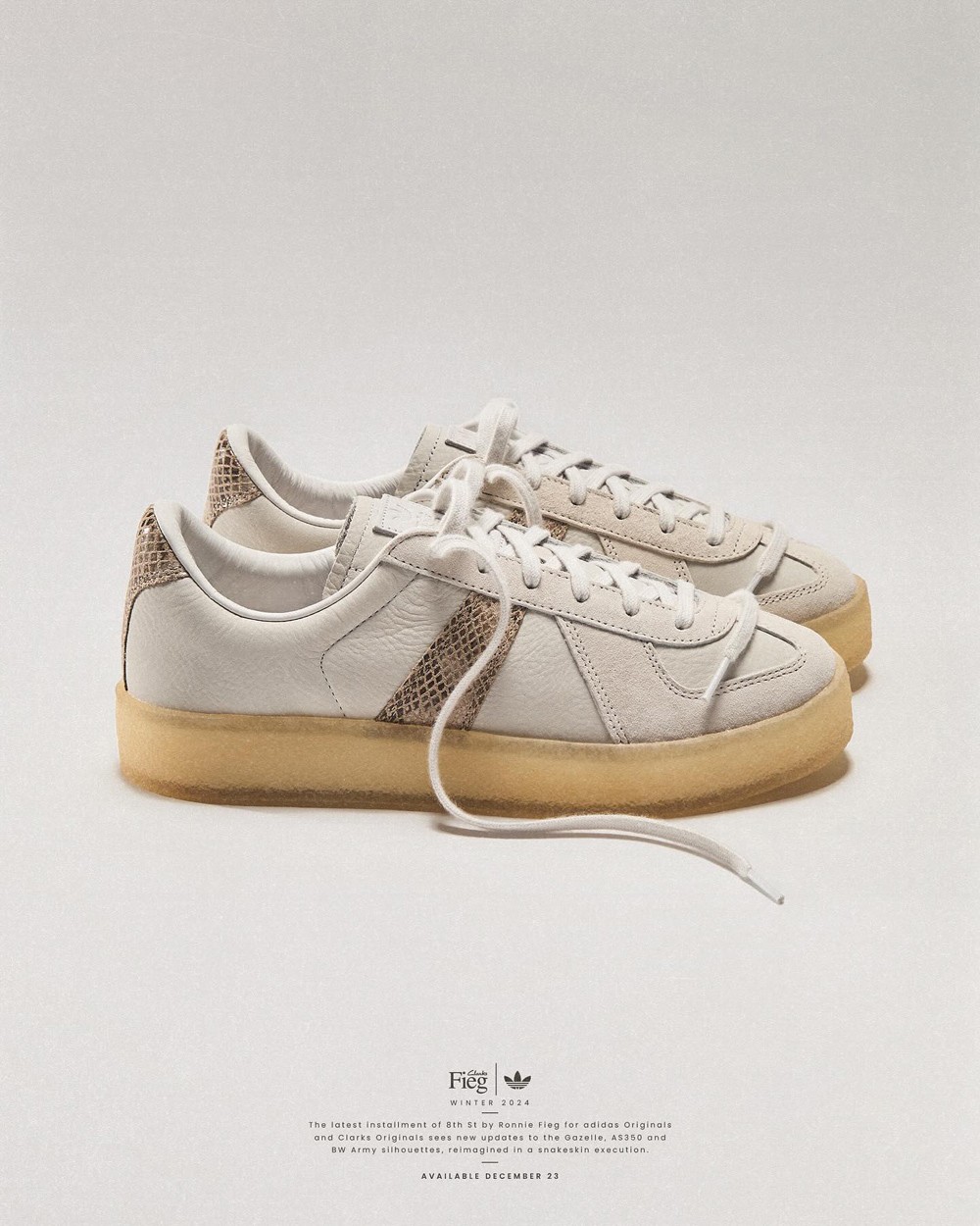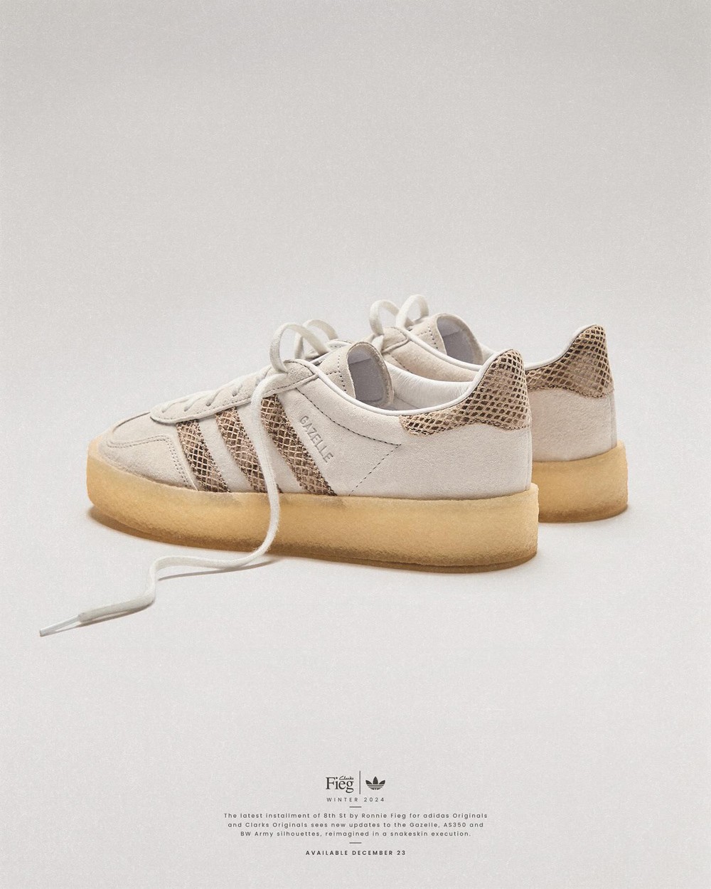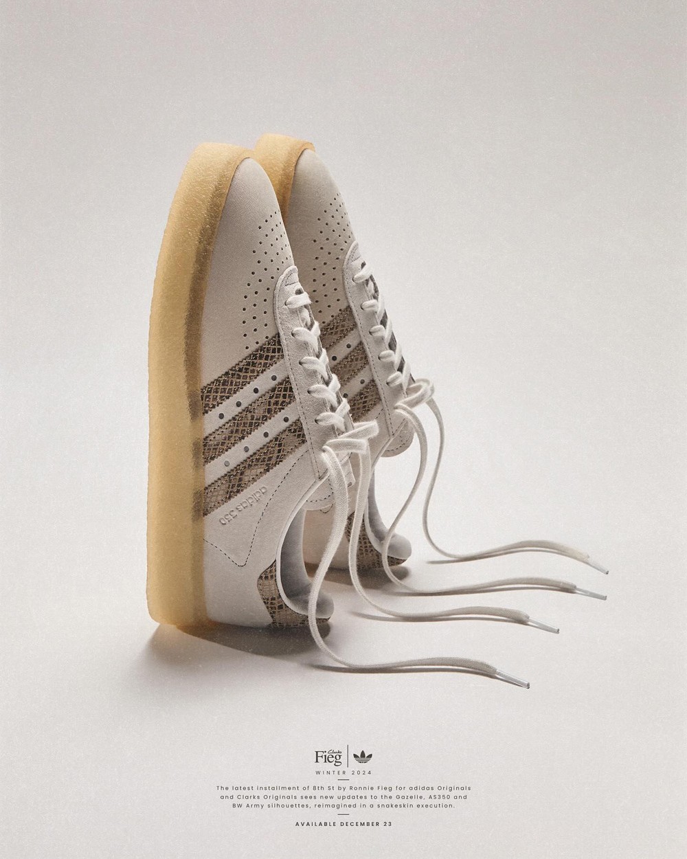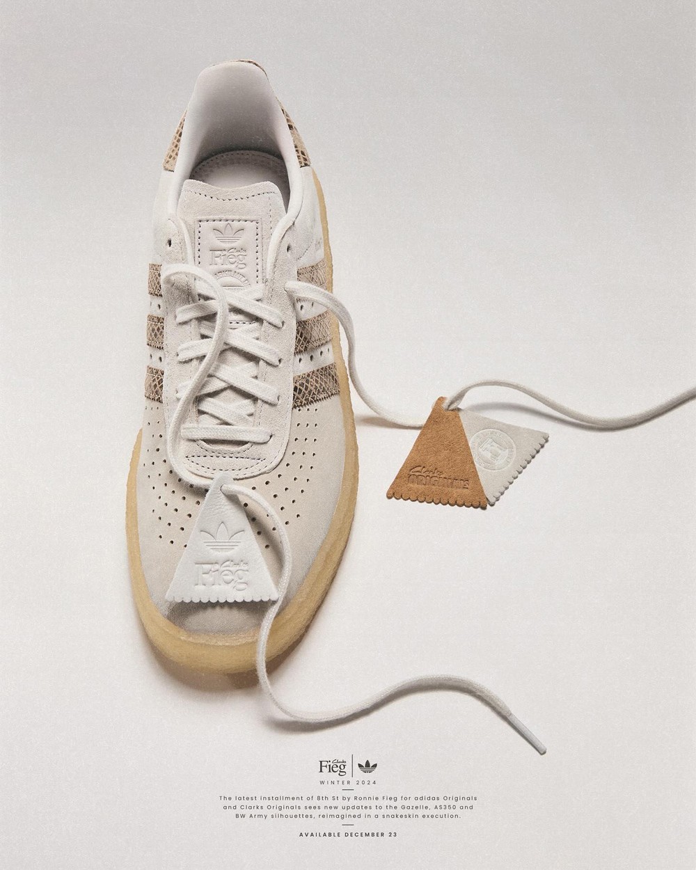 KITH 主理人 Ronnie Fieg 再度携手 adidas Originals 和 Clarks Originals 合作,带来全新 Gazelle Indoor、AS350 和 BW Army 三方联名鞋款。