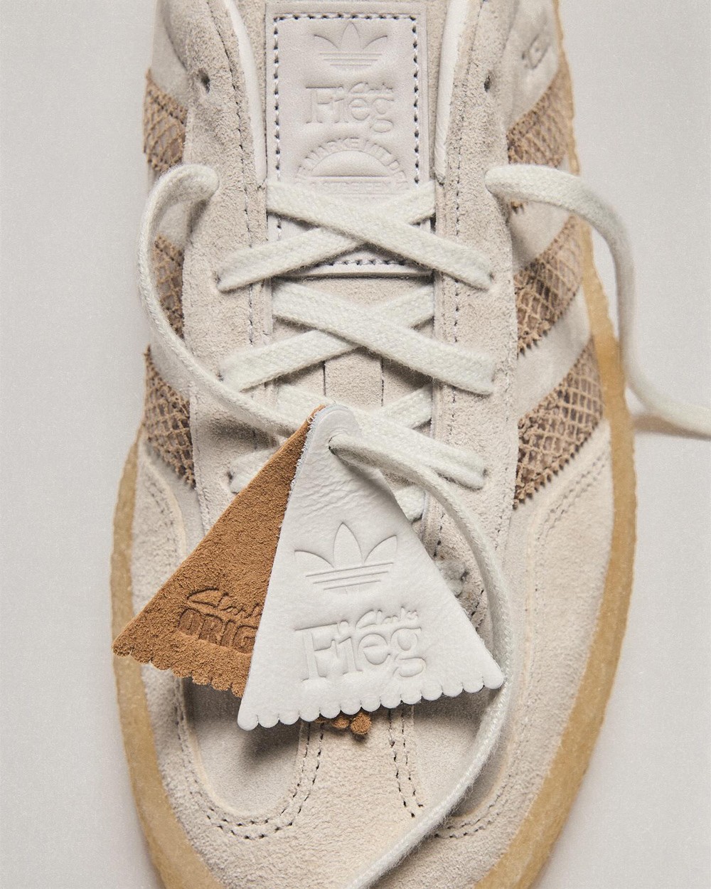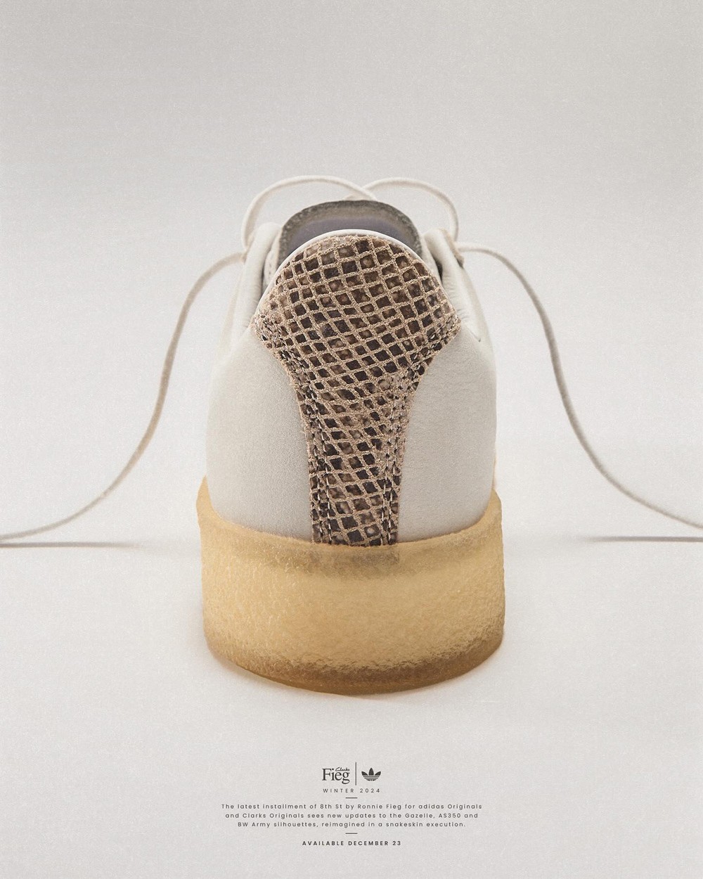 鞋侧与后跟注入蛇纹装饰,搭配 Clarks Originals 标志性的皮章吊牌和绉绸生胶中底收尾,拥有耐看复古格调之余,更赋予独一无二的联名辨识度。