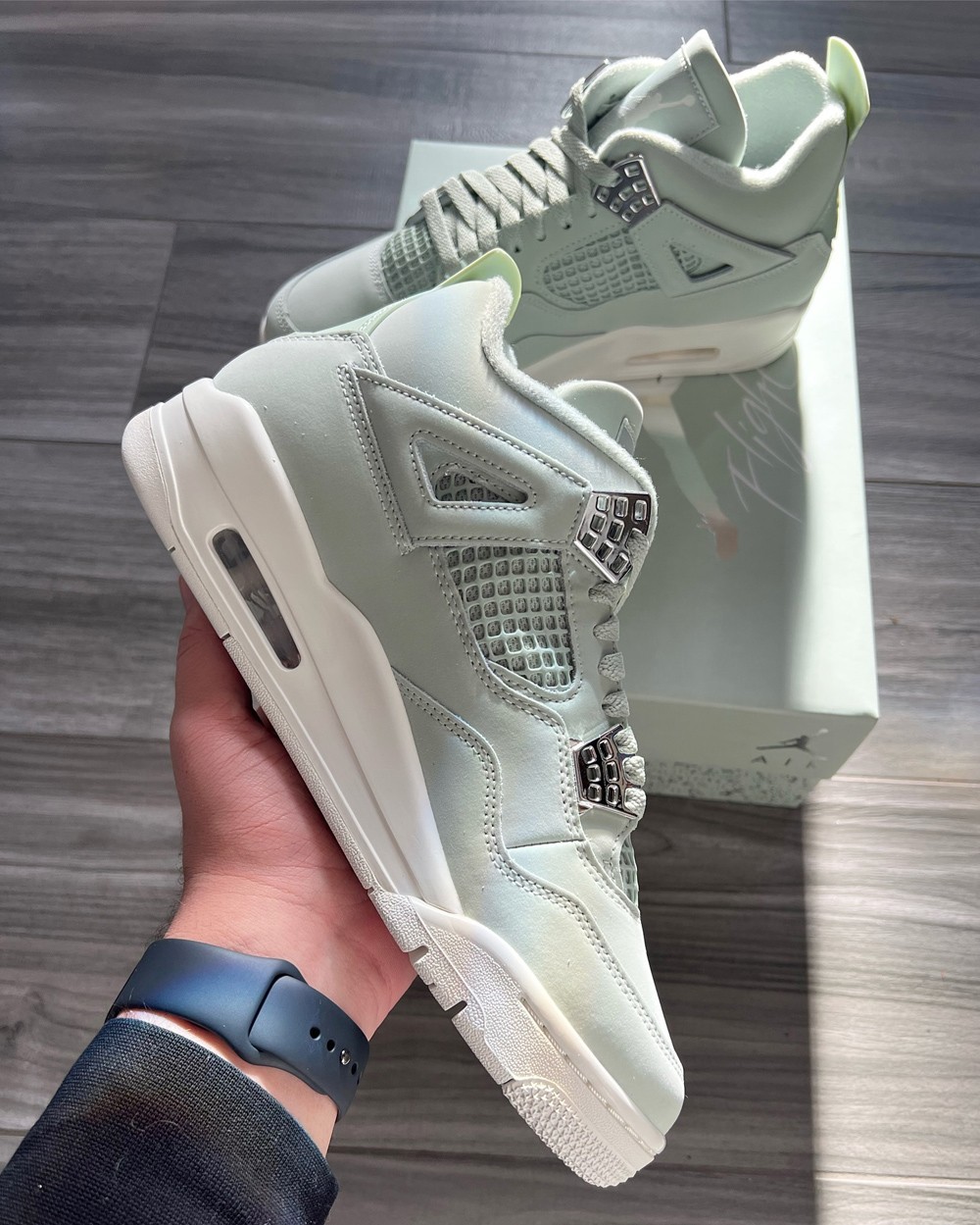 浅色系的 Air Jordan 4 一直都有着极高人气,明年春季又会有清爽装扮登场! 整体采用浅灰色调示人,搭配细腻的磨砂皮革质感与金属银鞋带扣,既有着古典篮球鞋的复古韵味,又释放出讨喜的百搭属性。 目前消息将于明年 3 月 8 日以 WMNS 女性规格登场,届时将覆盖大部分男性尺码,不知你觉得颜值如何呢? Air Jordan 4 “Seafoam” WMNS 日期:2025 年 3 月 8 日 pic via:brandon1an/zsneakerheadz