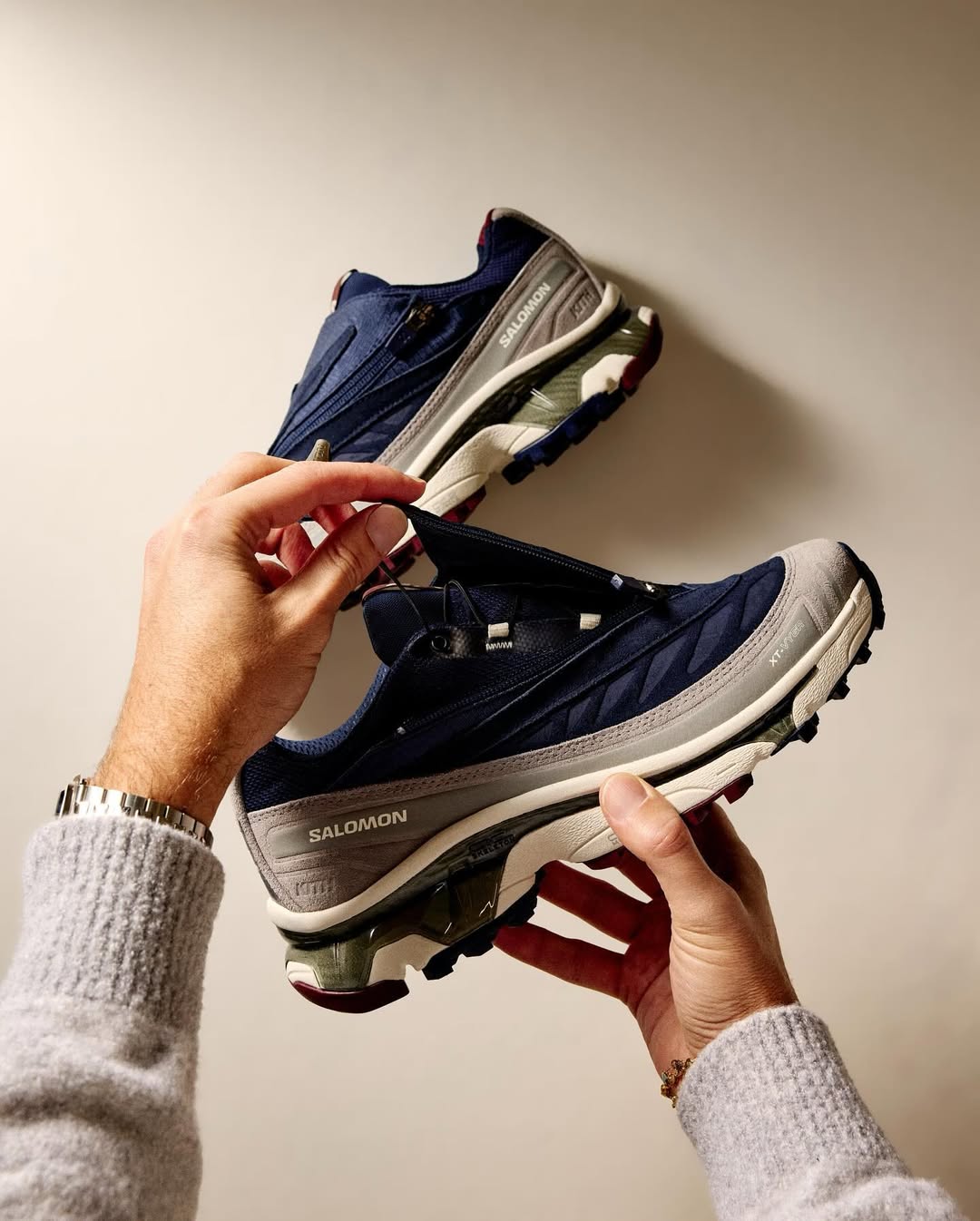 时隔两年再合作,能对 Salomon 经典鞋型进行小修小改,不难看出 KITH 的设计权限变高了!