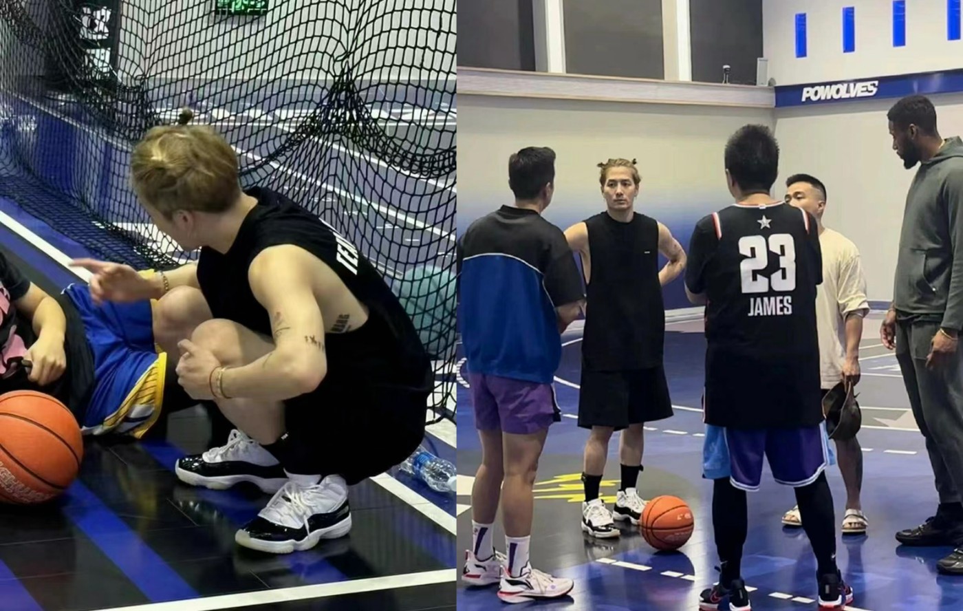 在场边刻意向镜头展示出一双 Air Jordan 1,旁边的老哥也是相当配合,摆出一副吃惊的表情。