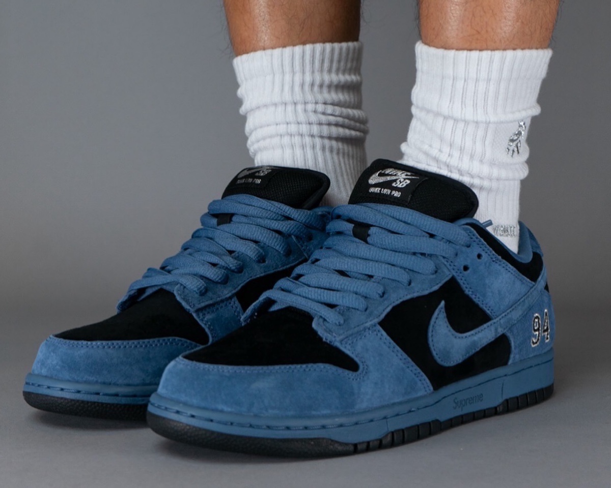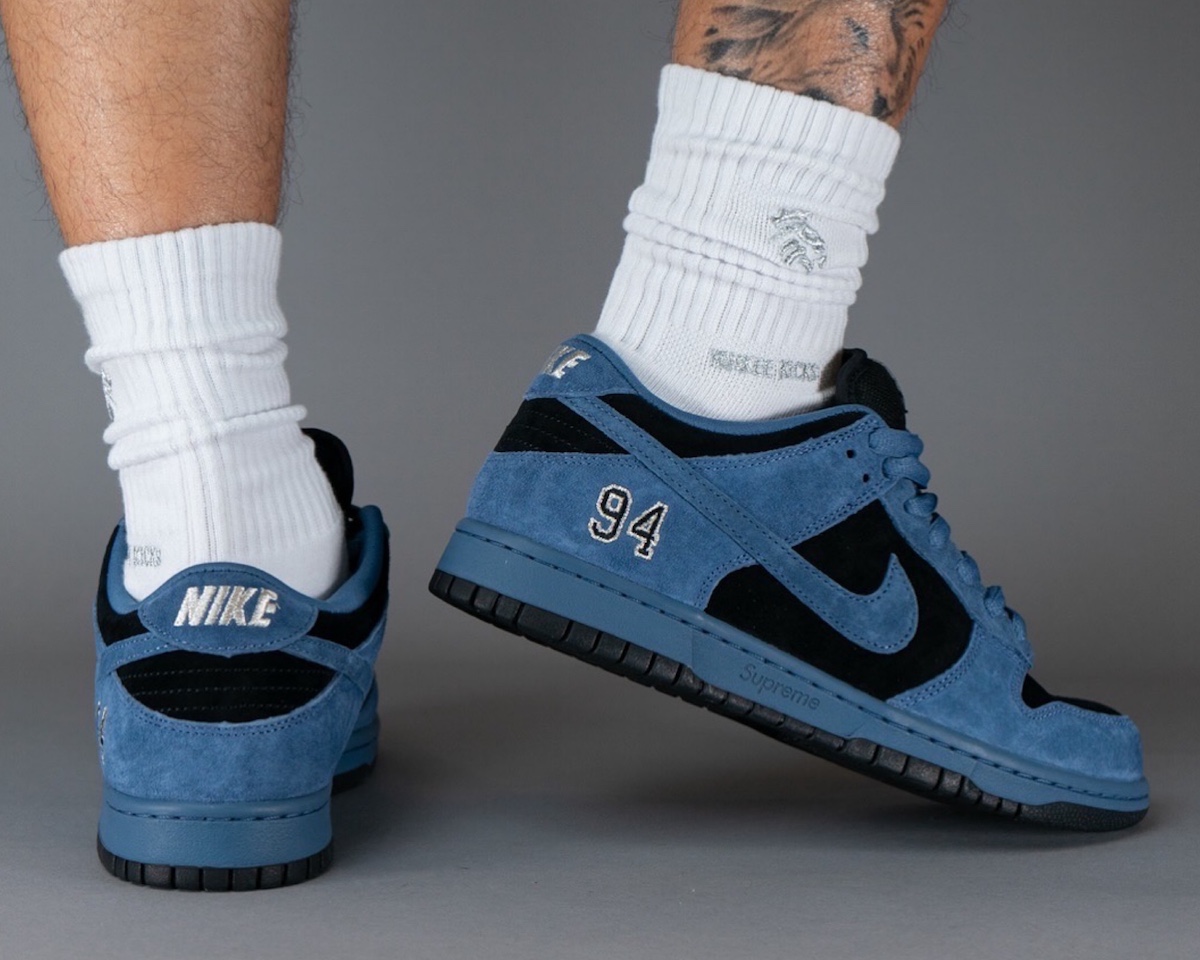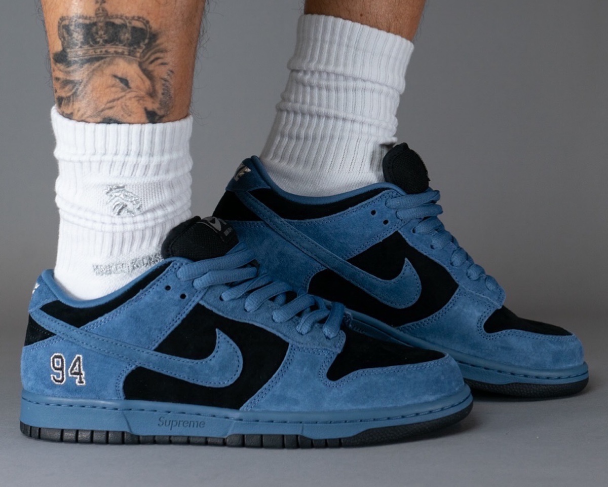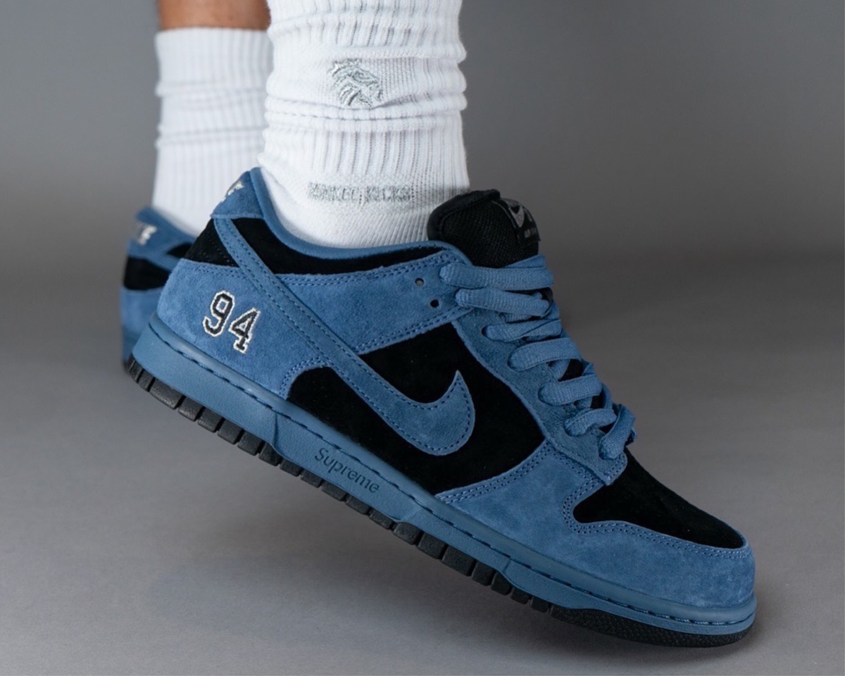 这段时间 Supreme x Nike SB Dunk Low 的实物接连释出,刚刚 “Ocean Fog” 配色迎来一组上脚图。