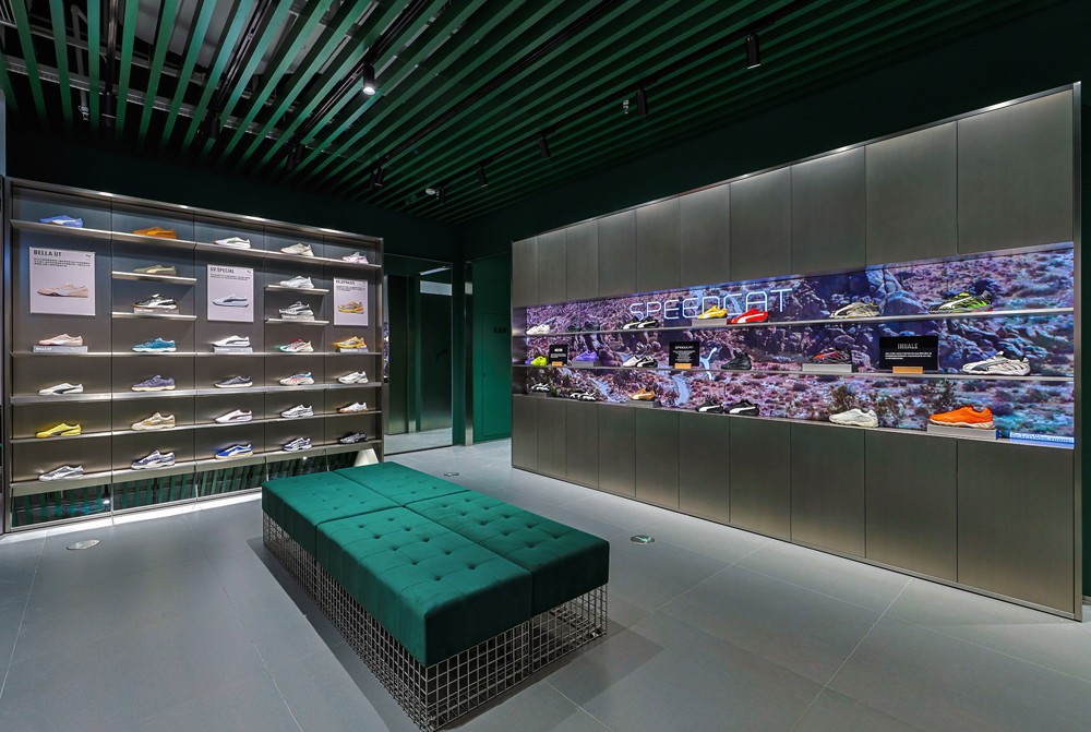 PUMA 标志性的 “美洲狮” 图案跃然于北京门店限定的地图主题墙上,象征着 PUMA 与当地文化的融合。