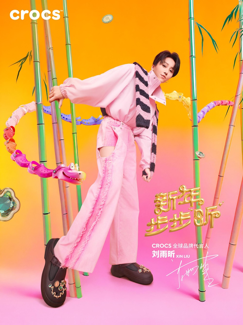 Crocs 携手全球品牌代言人刘雨昕,在新年之际带来最新视觉大片,并特别推出代言人合作款智必星鞋花套装,以独特的时尚风格与文化底蕴,邀请所有洞门人共度新春佳节,一同新年步步 “昕”。