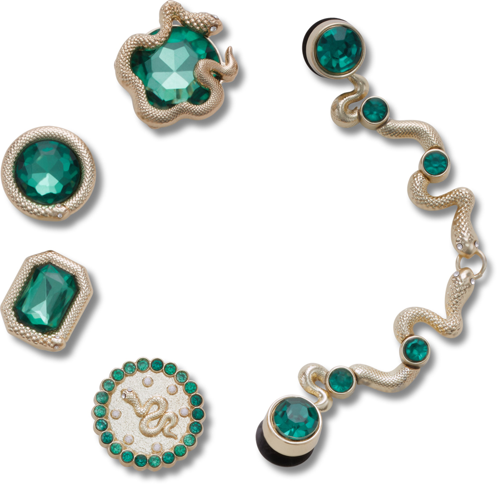 同时在智必星鞋花的创新上不断发力,本次,Crocs 推出了融入蛇年元素的的特色节日绿宝石五件套智必星鞋花与象征纯净美好祝福的金属珍珠五件套智必星鞋花,为新春佳节带来欢乐与好运。