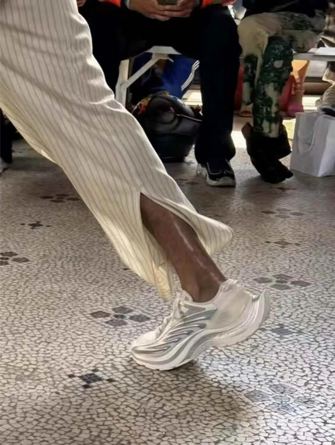 其实早在今年 7 月的巴黎时装周,这双鞋就火了一把。在 NAMESAKE SS25 秀场上,无数摄影师都把镜头对准了这双新鞋。