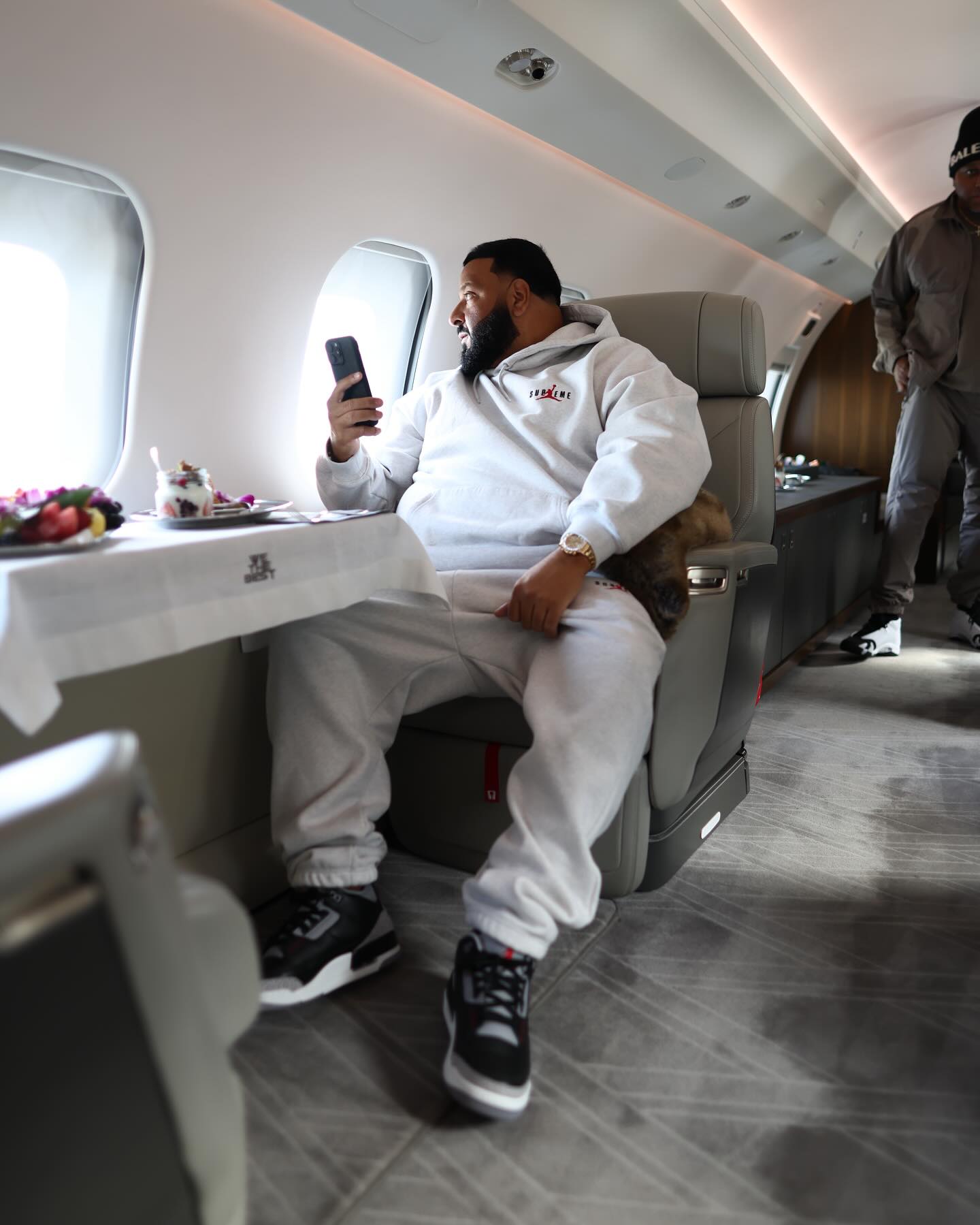 近期鞋王 DJ Khaled 在不同场合都上脚了这双鞋,服装搭配方面,分别用正装和运动造型驾驭。