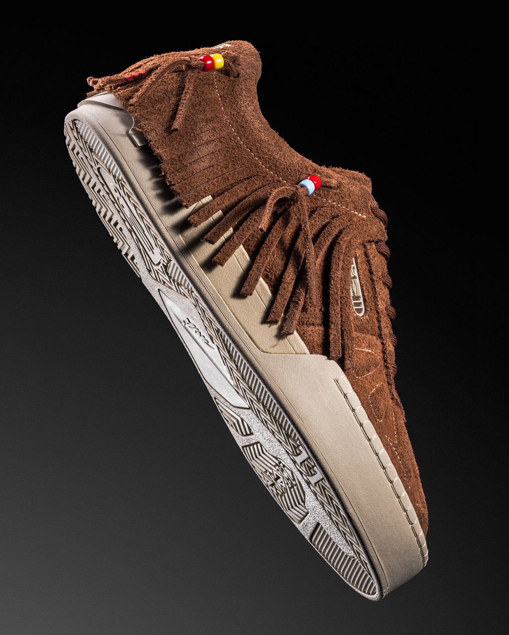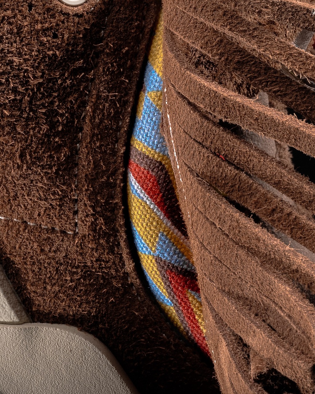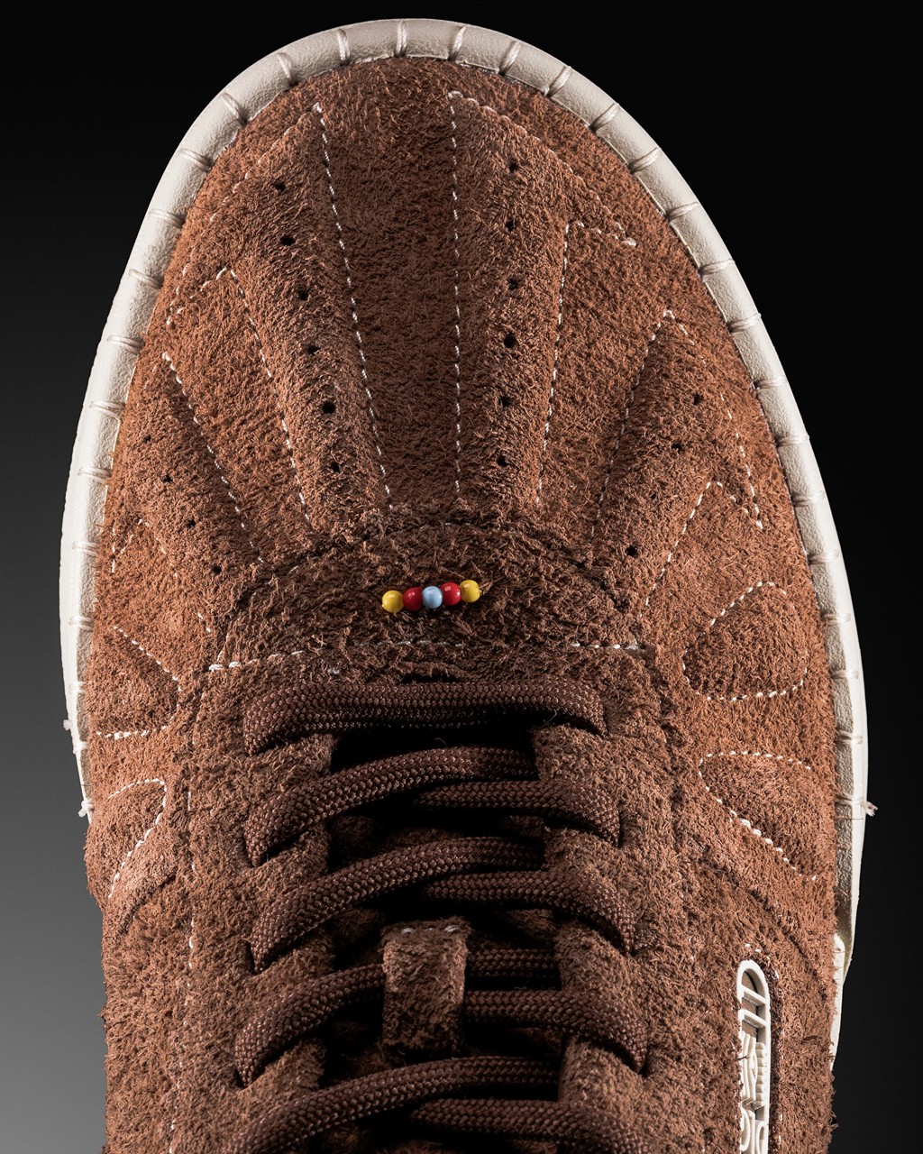 延续了 KAI1 的棕色麂皮鞋面,致敬部落传统服饰。