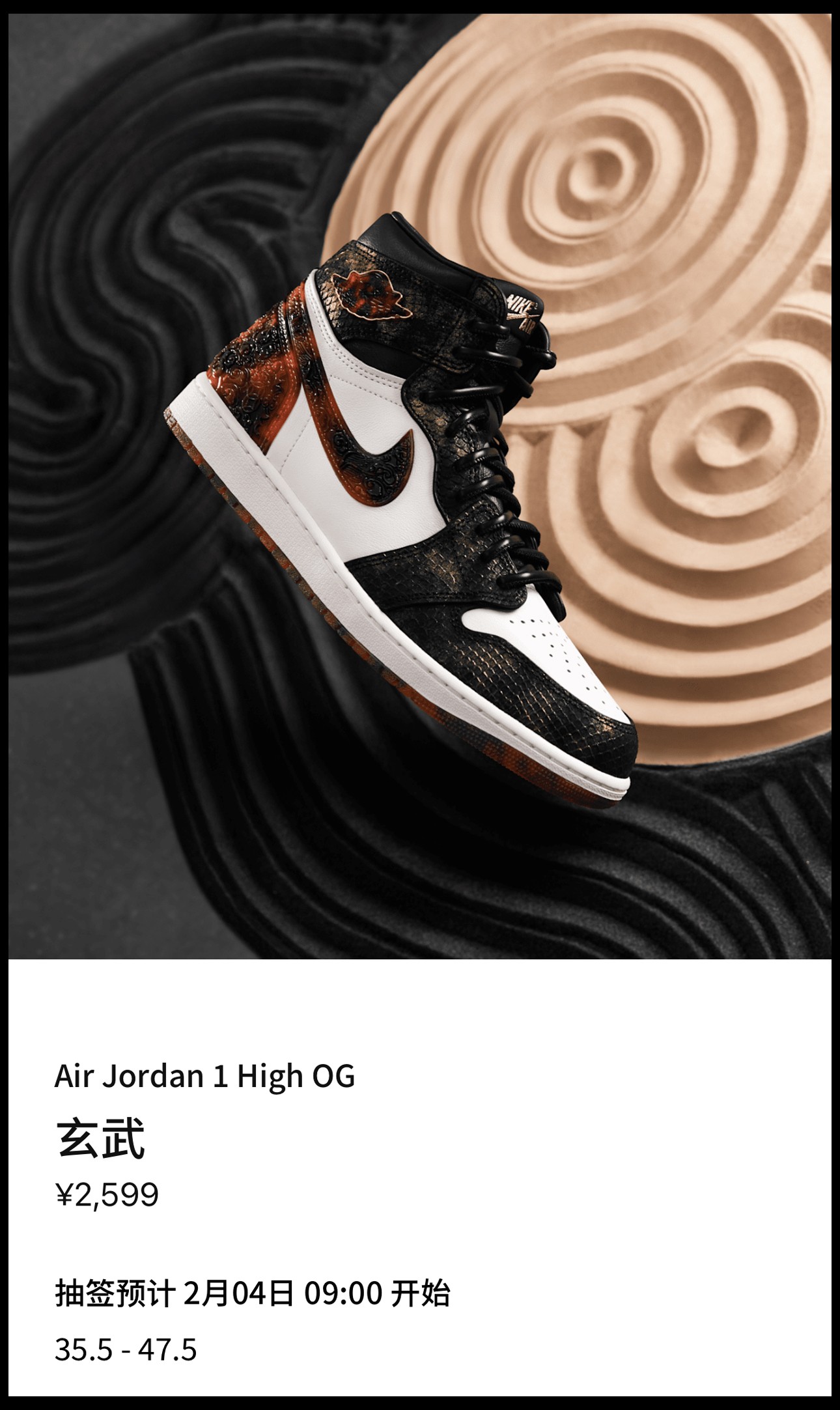 以中国古代神话中的四大神兽之一的玄武为灵感,巧妙将蛇与龟合体演变的灵兽形象,通过奢华材料与精妙刻画,注入 Air Jordan 1 之中,传递高贵与长寿的吉祥寓意。