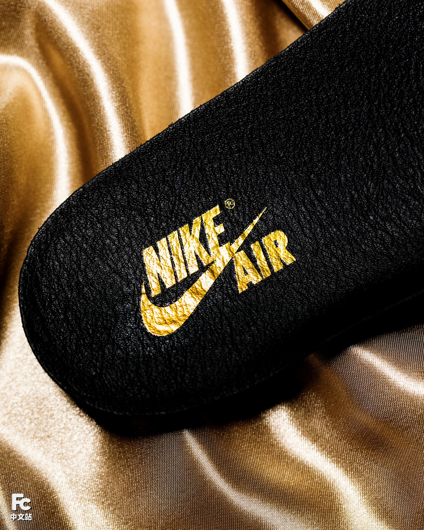 我们熟悉的 AJ1 鞋盒本次也一改传统的黑底红钩装扮,辅以更加优雅的黑金撞色示人。