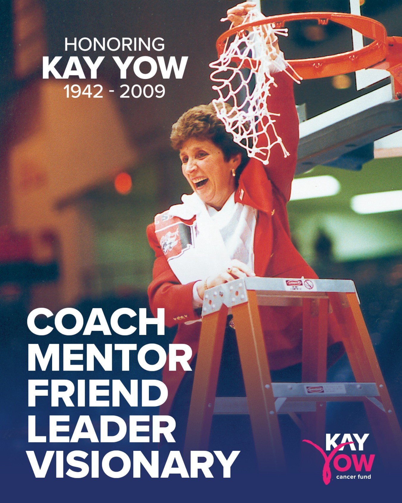 Kay Yow 源自美国篮球传奇教练 Sandra Kay Yow,在她执教生涯后期,一直与癌症抗争,不仅带领球队取得冠军成绩,同时还创立 Kay Yow Cancer Fund 癌症基金会,帮助同样遭受癌症纠缠的人们勇敢面对。