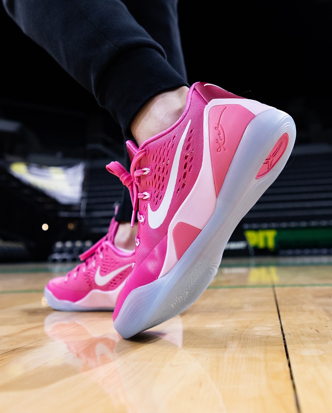 近日俄勒冈女子篮球队晒出一款全新「抗乳腺癌」主题 Nike Kobe 9 EM Protro,不仅承袭讨喜的粉红装扮,金属光泽后跟点缀的粉丝带图案,更直击主题。