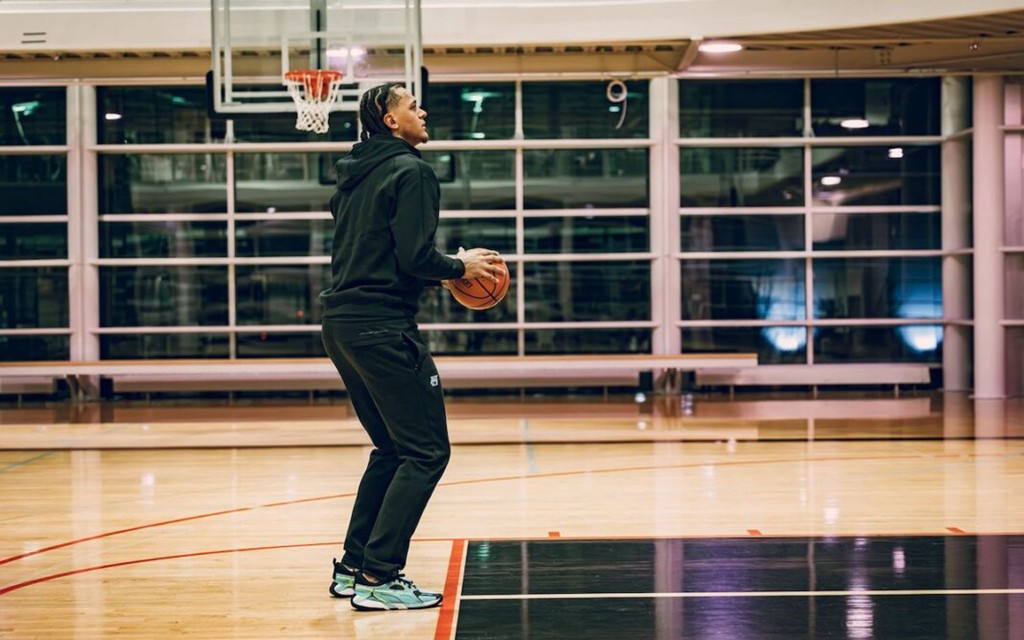 鞋面配色融入了班凯罗家乡西雅图的元素,以湖水蓝形式呈现。