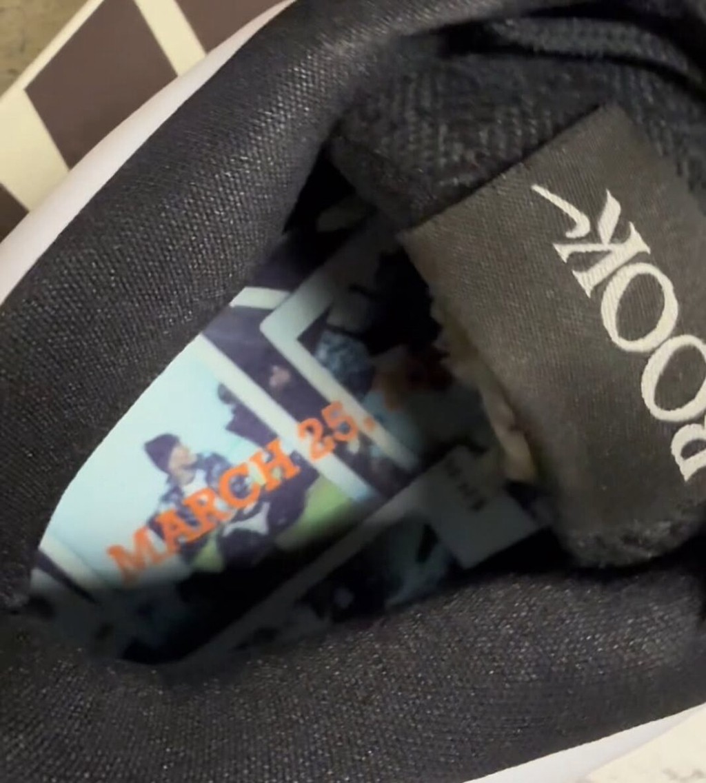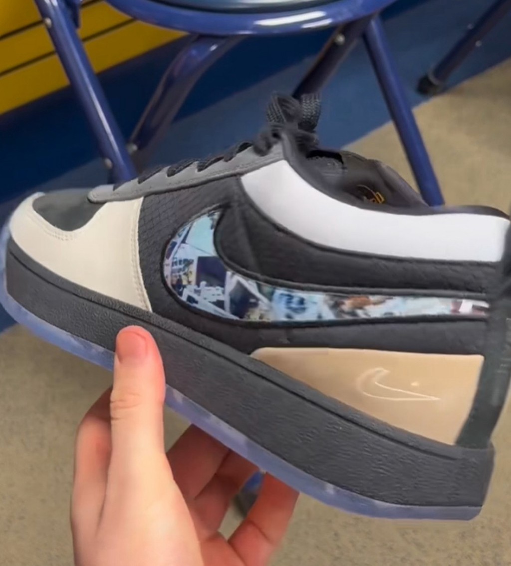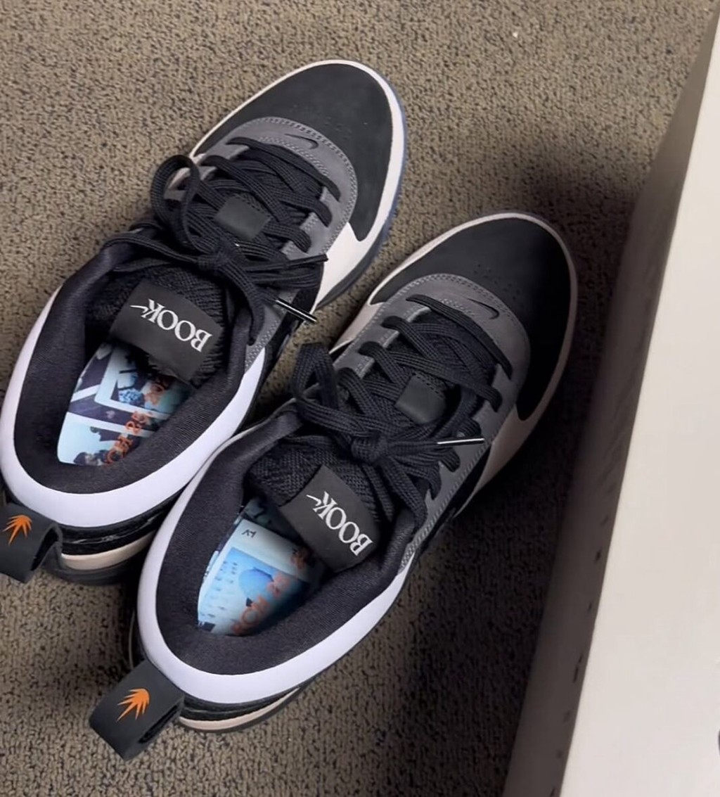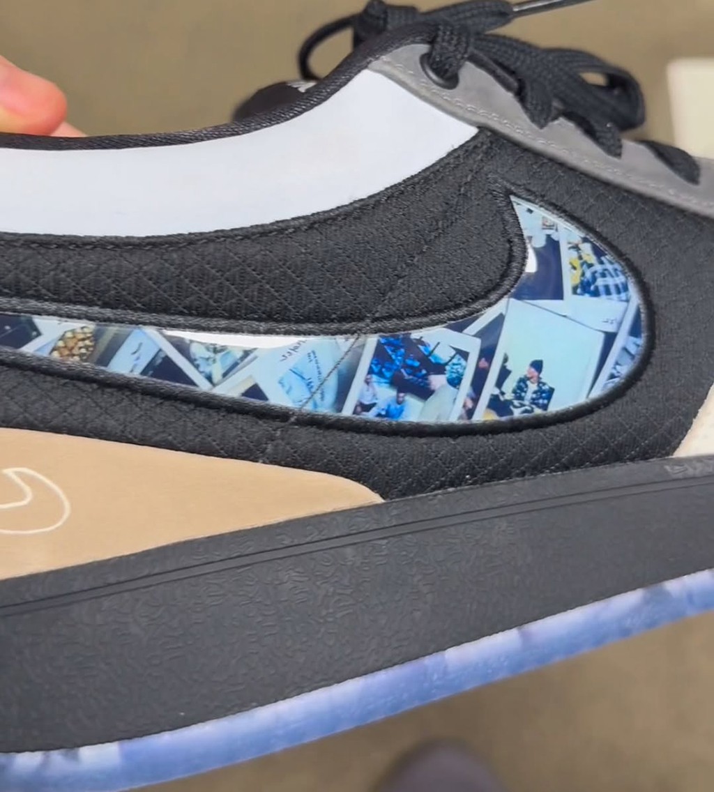 可以看到,Swoosh、鞋垫等地方都印满了布克自己的拍立得照片,处处透露着复古调性。