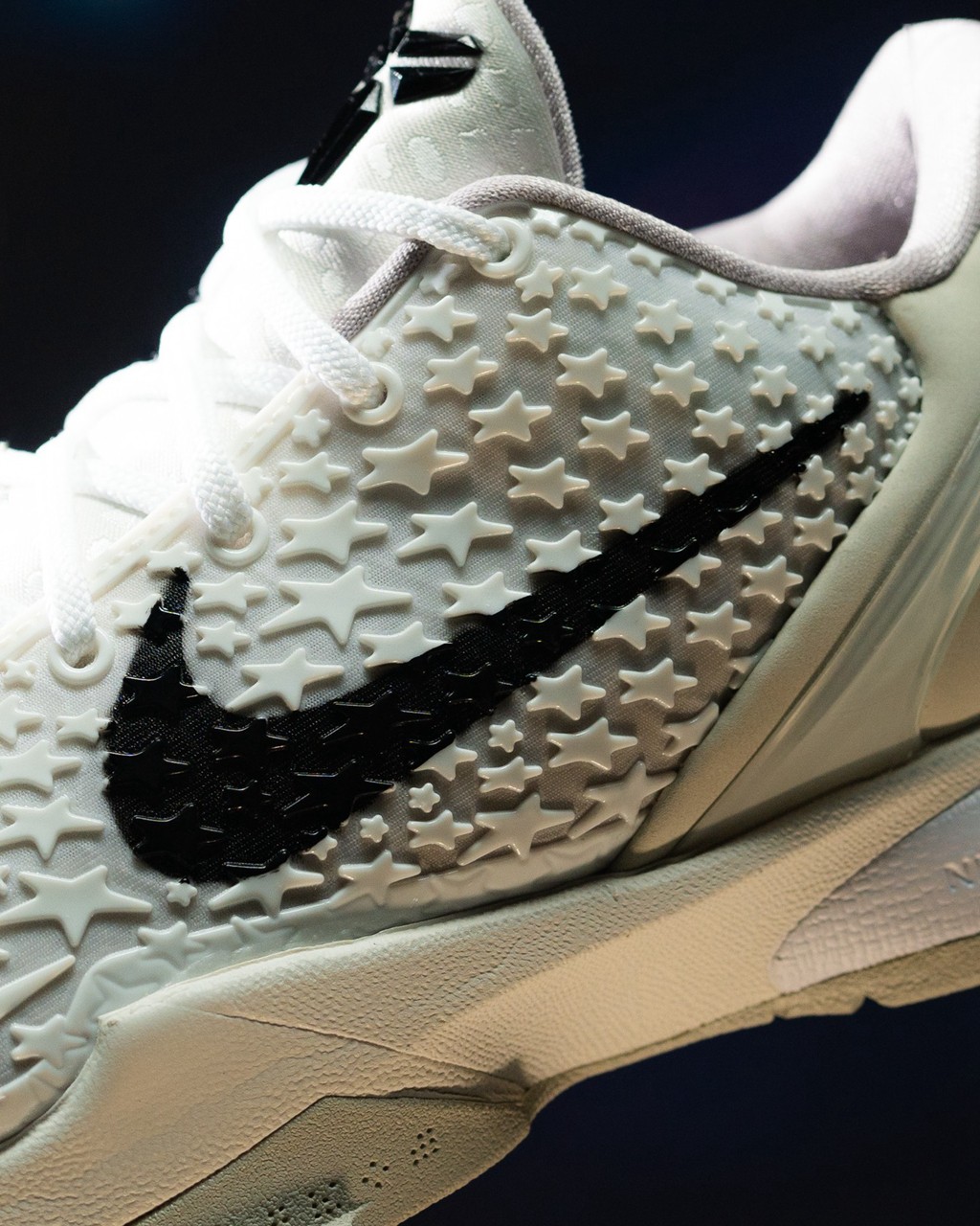 说回鞋款本身,作为首次现身 Kobe 6 这一鞋型的全新设计,鞋面外侧呼应全明星赛主题的星星纹理,与鞋身内侧原本的曼巴蛇纹无缝衔接,成为本次鞋款的最大亮点。