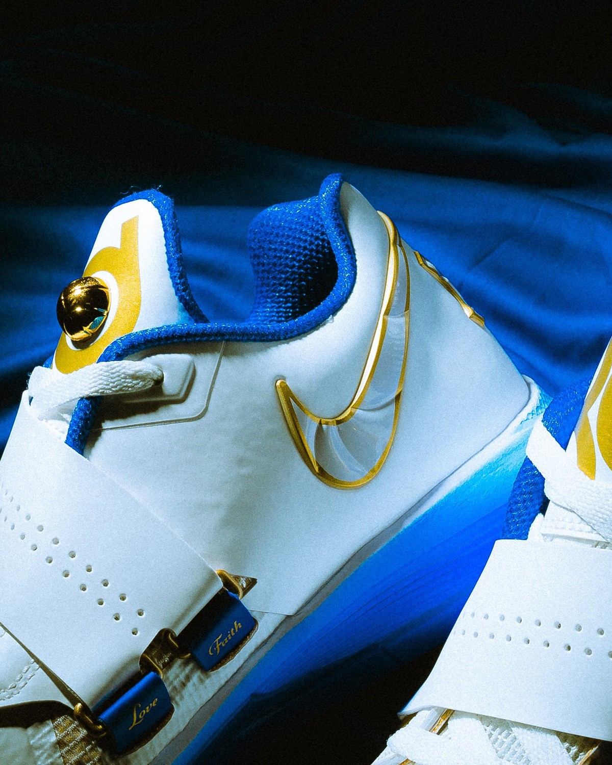 无论是绑带内部的话语,还是鞋鞋舌内侧的 Wanda 与玫瑰花,以及立体浮雕的金色奖杯,处处都彰显着杜兰特对母亲的爱。