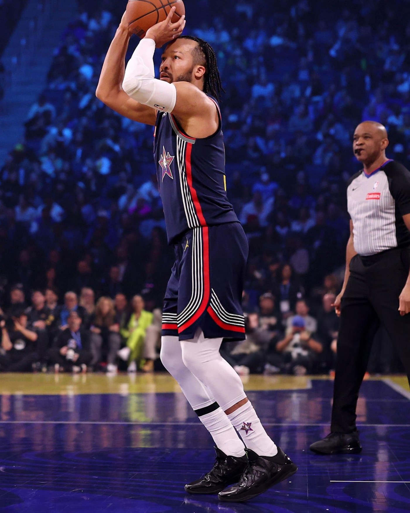 而这款最新科比战靴,也由杰伦·布伦森穿上了全明星赛舞台。