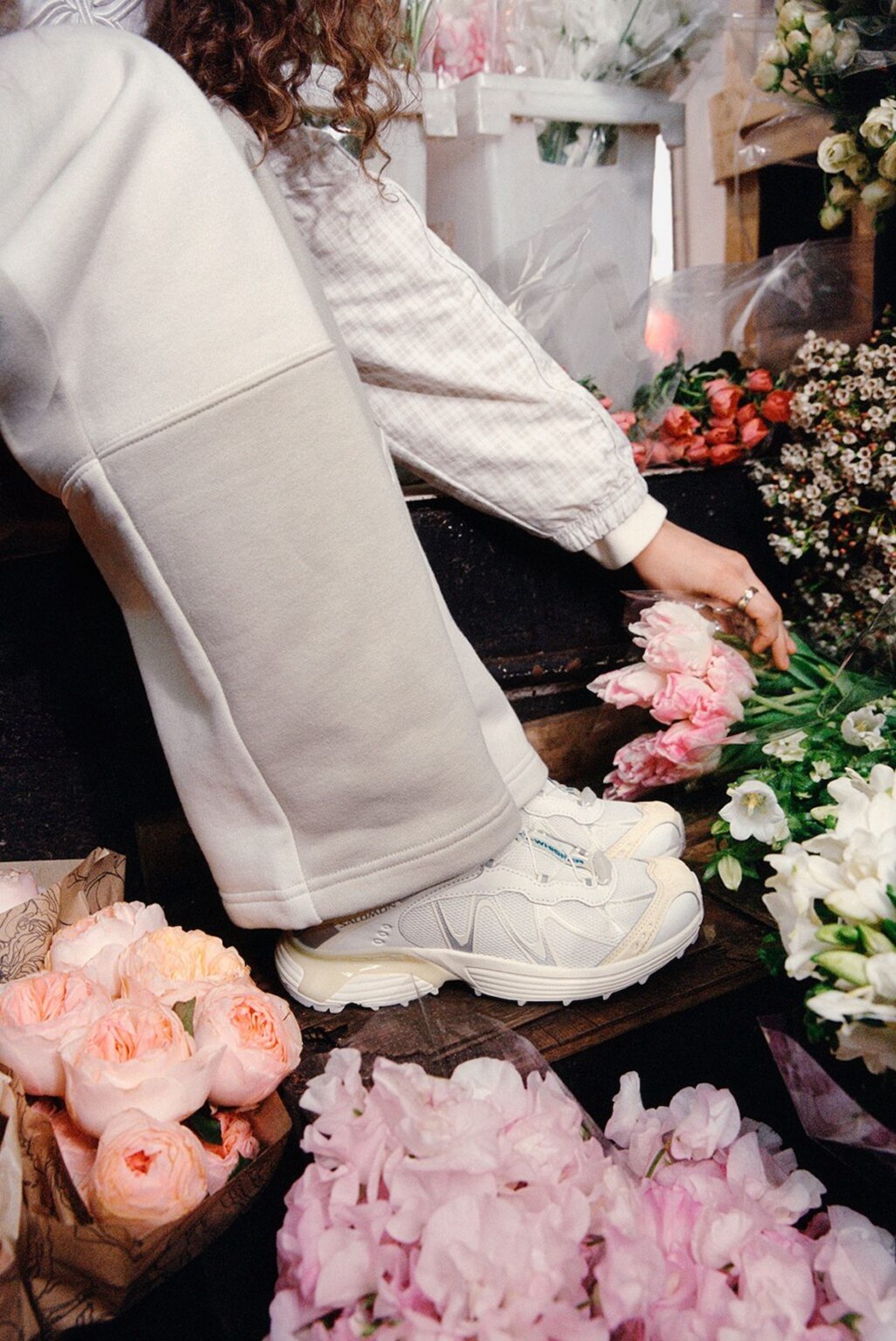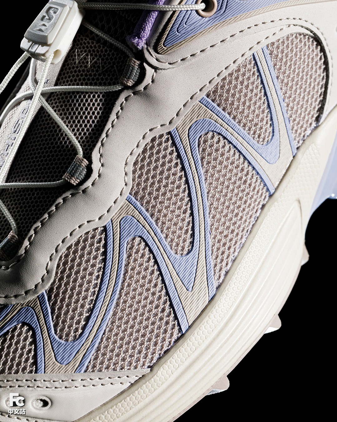 运用了淡粉色调,在刻板印象中似乎和传统户外鞋款毫无联系,却让 Sandy Liang 打破了壁垒,让潮流玩家们看到了 XT-WHISPER 在时尚领域的更多可能性。