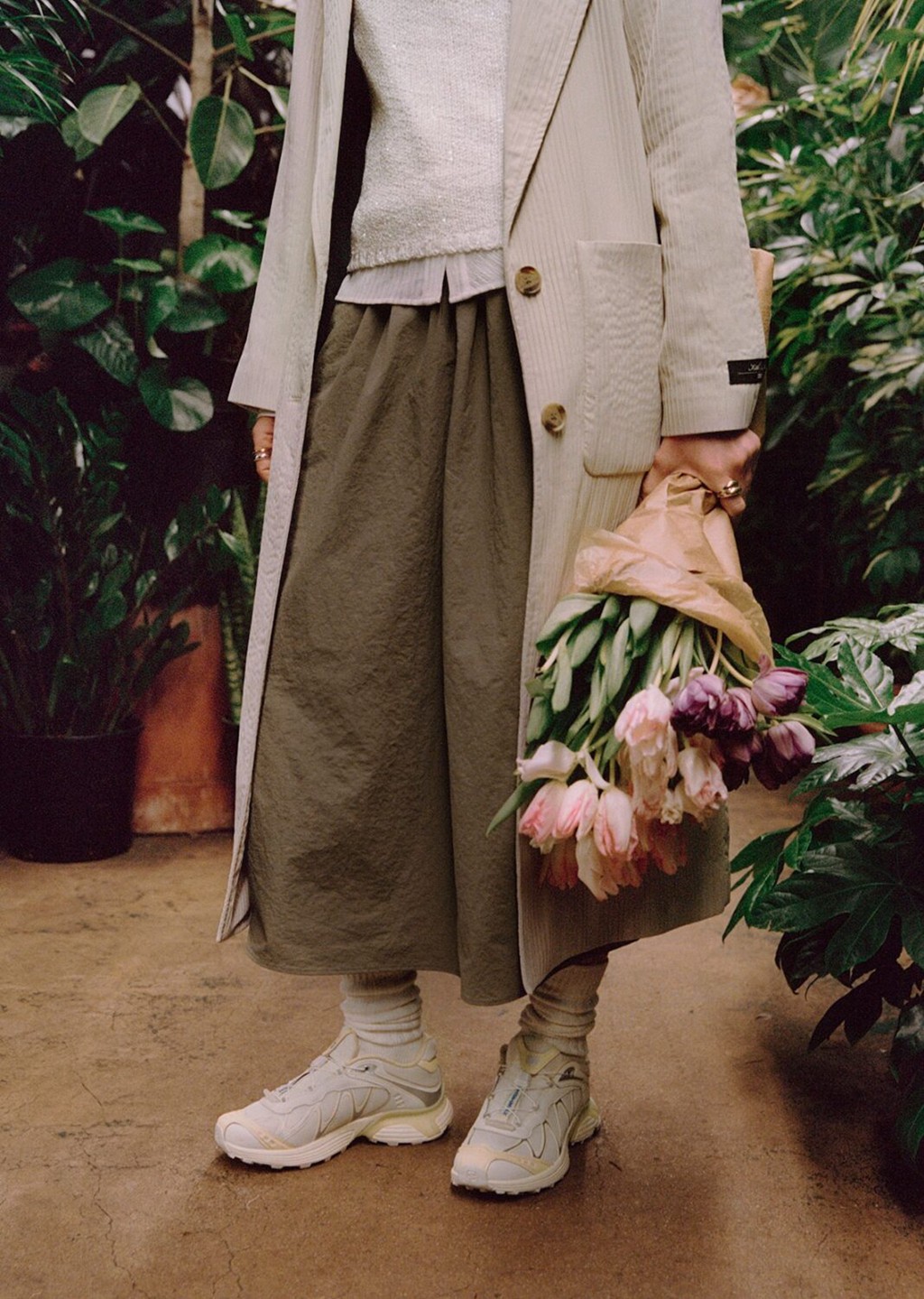 首先是 Sandy Liang 联名款,通过传奇设计师之手,将女性的俏皮美学与 Salomon 的户外基因完美融合,这一大胆的跨界尝试也为 “户外时尚” 树立了新的标杆。
