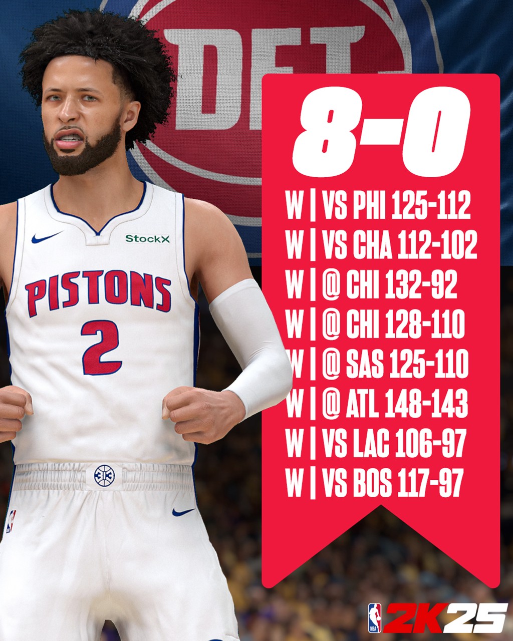 截止目前,活塞打出了目前现存最长的 8 连胜,坐稳东部季后赛席位,未来可期。