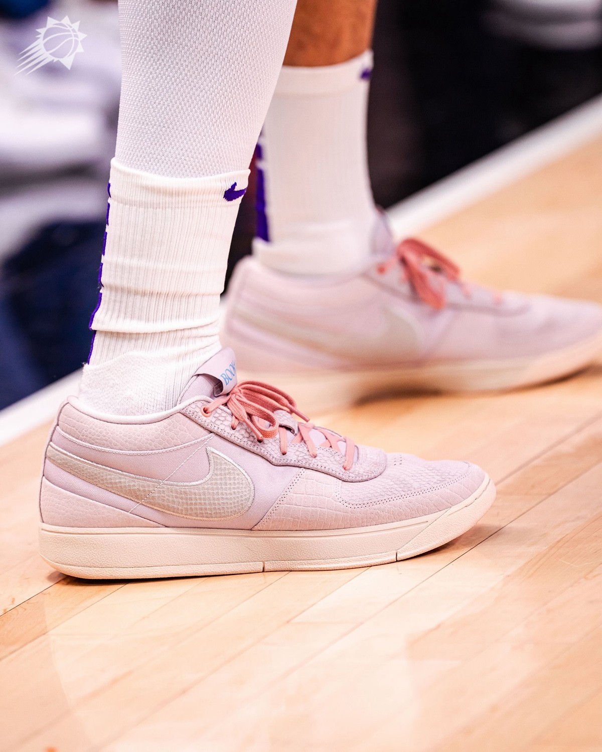 Nike 布克一代又曝光稀有版本! 在近期太阳对阵公牛的比赛中,布克上脚了一款罕见蟒纹 Book 1。 细看鞋带前端暗藏 75005 刺绣,实际对应的是 Nike 波特兰总部的邮政编号。 据悉这款特殊配色暂没有市售计划公布,仅作为布克本人及与他在 Nike 合作的团队成员专属,稀有程度不言而喻。 话说距离「布克一代」问世也有一年光景,Book 2 始终未能露面现身,让人格外好奇,届时将会已怎样的姿态和灵感呈现,不妨拭目以待吧!