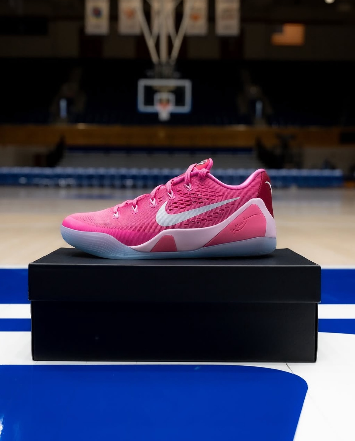 以往的 PE 配色都是针对各个大学校队特别打造,但这一次这双 Kobe 9 EM “Kay Yow” PE 发放给了包括杜克大学、俄勒冈大学、俄亥俄州立大学在内的多个顶尖女子篮球队。
