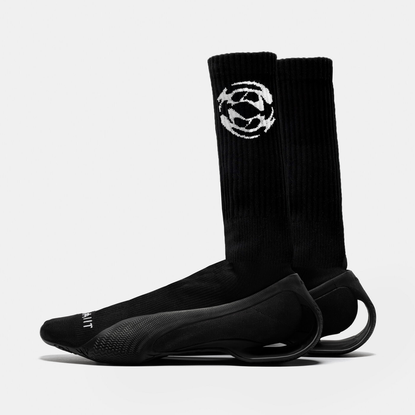 配套推出的高帮袜套版本延续相同设计语言,醒目的 ROMBAUT 标识彰显联名身份。