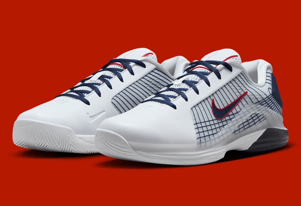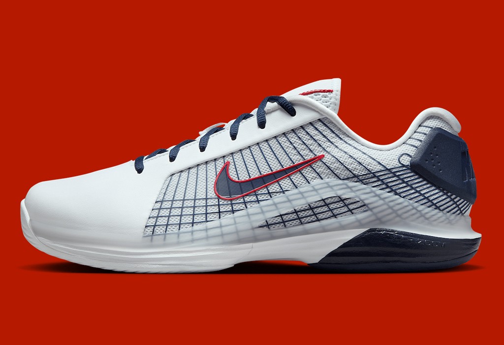 这双鞋型是 Nike Vapor 12 Hypersmash 网球鞋,因为有着和 Hyperdunk 2008 较为相似的鞋面结构,因此换上奥运装扮显得并不违和。