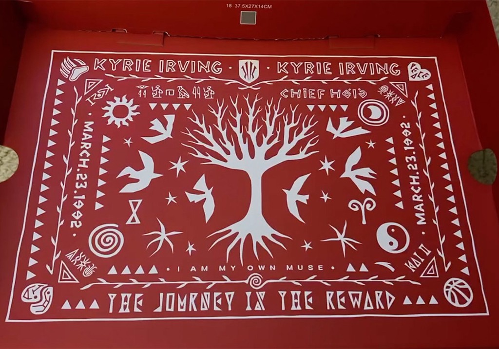 这款是为了庆祝欧文的生日而打造,鞋面丰富的细节正是为此而准备。