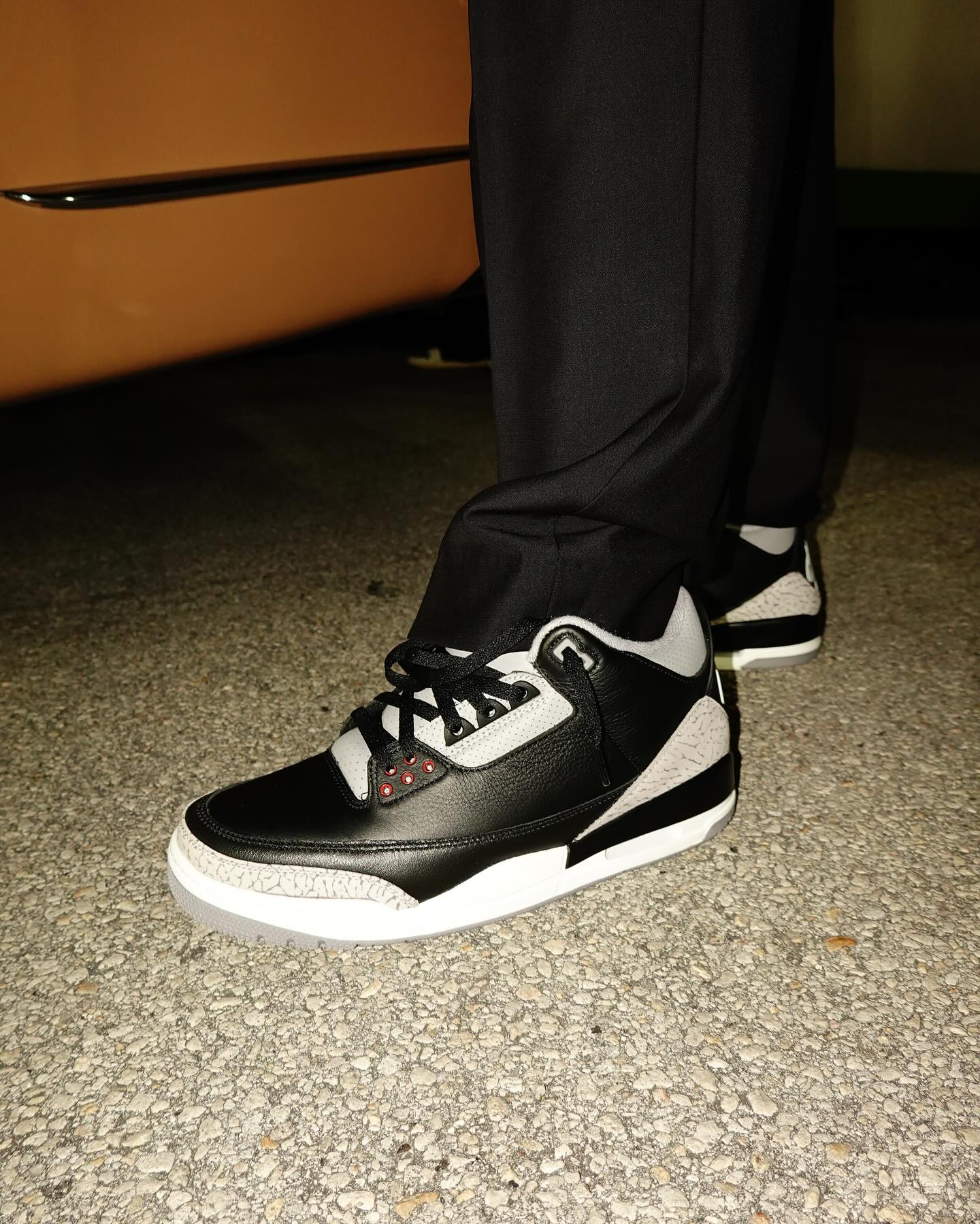 对于「黑水泥 AJ3」来说无论是牛仔裤的休闲风格,还是运动造型、正装都能轻松驾驭。