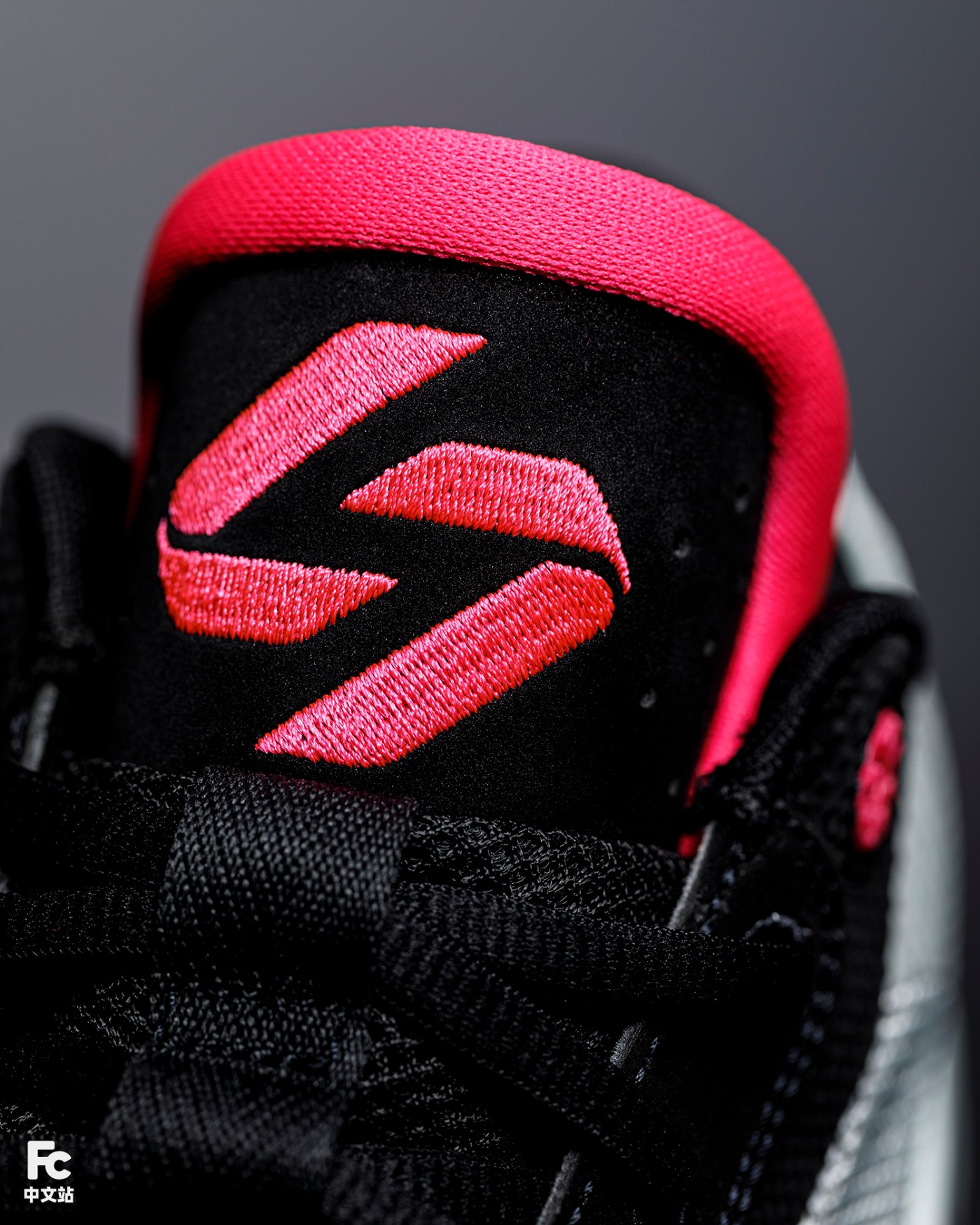 加之鞋舌部位,在类似斑驳质感的皮料上,刺绣有醒目的东契奇个人 Logo 刺绣,突显个人签名鞋的专属身份。