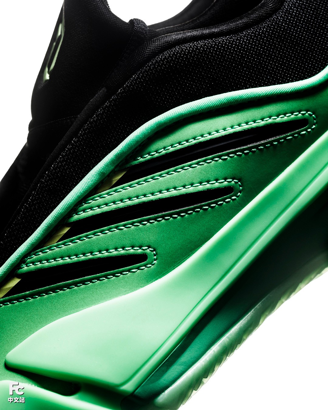 本次系列以绿色作为主视觉,其中这双 Dame 9 是最为纯粹干净的绿色。