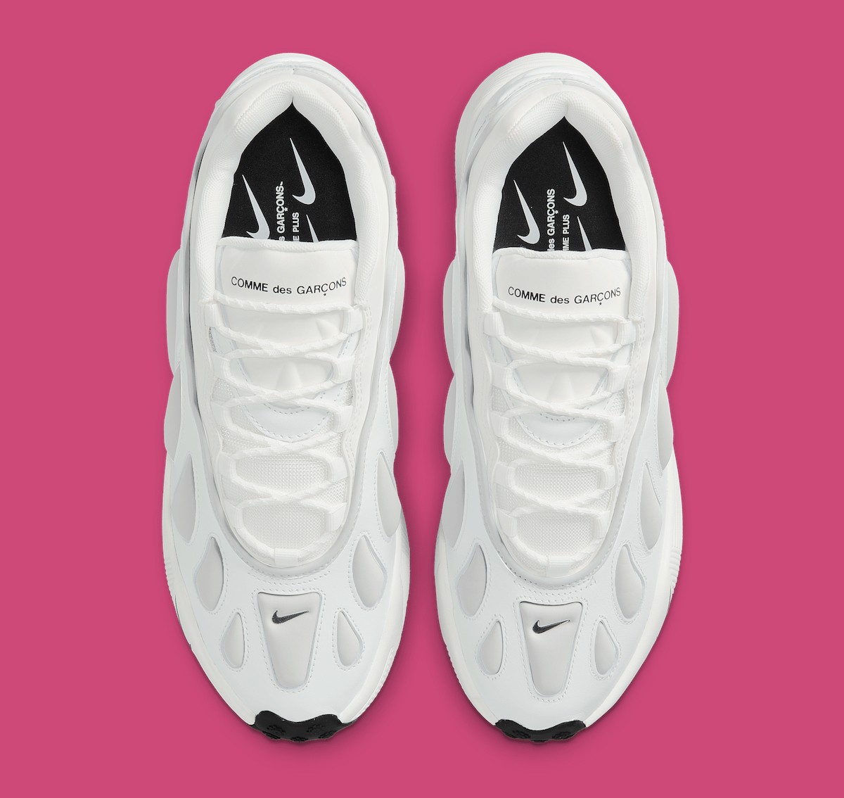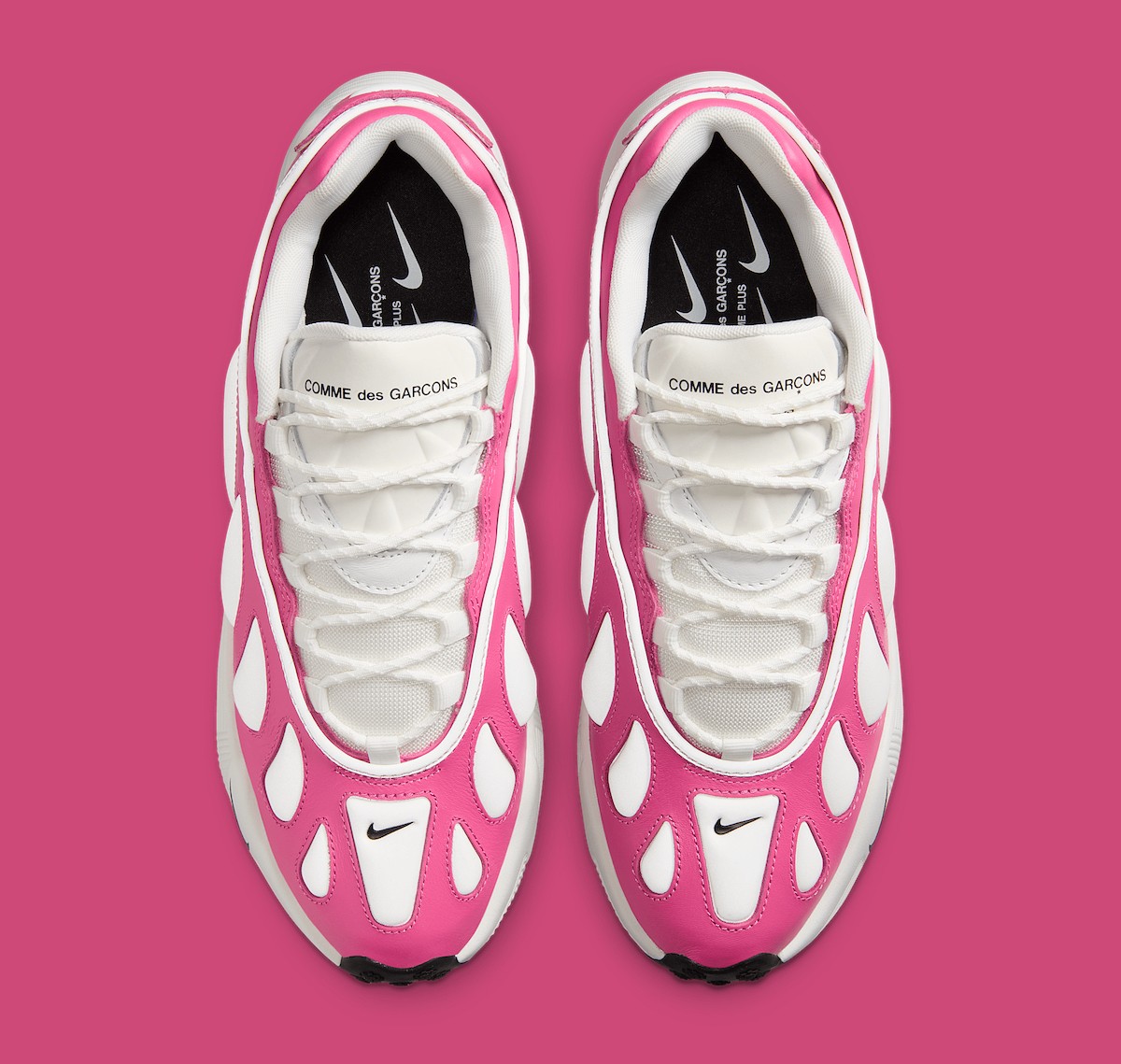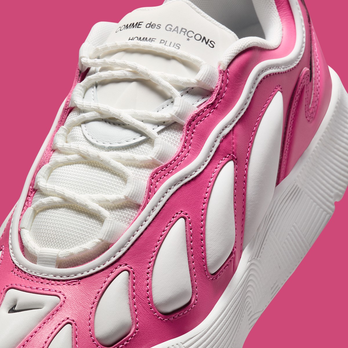 除了 CDG 经典的纯黑、纯白款,这次还带来粉色款,有着与春季气氛相呼应的清新活力。