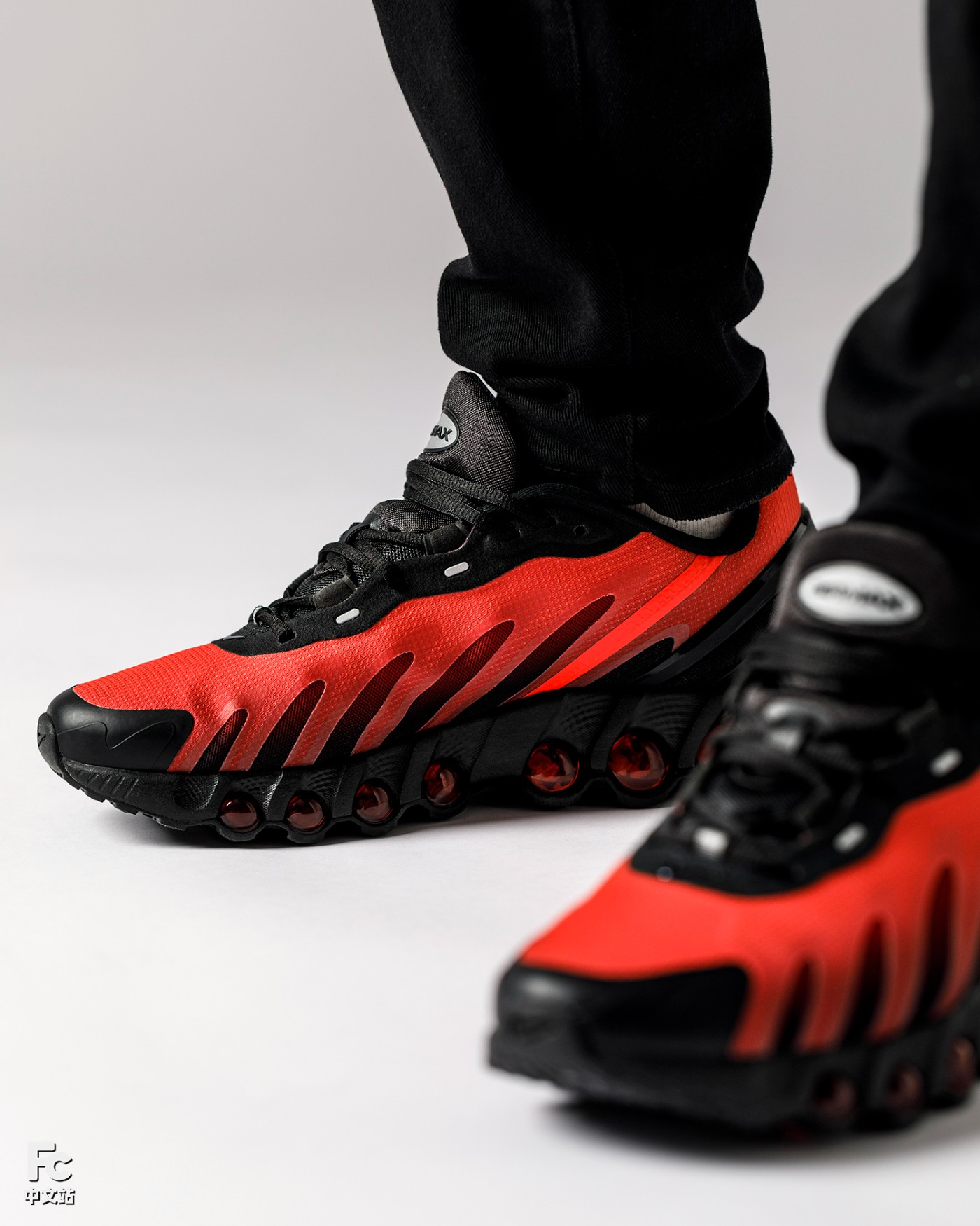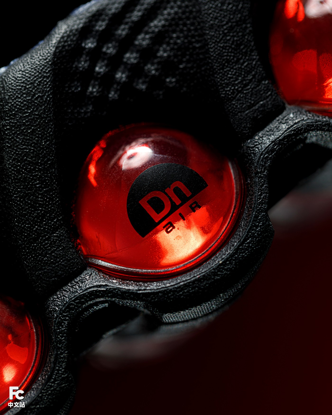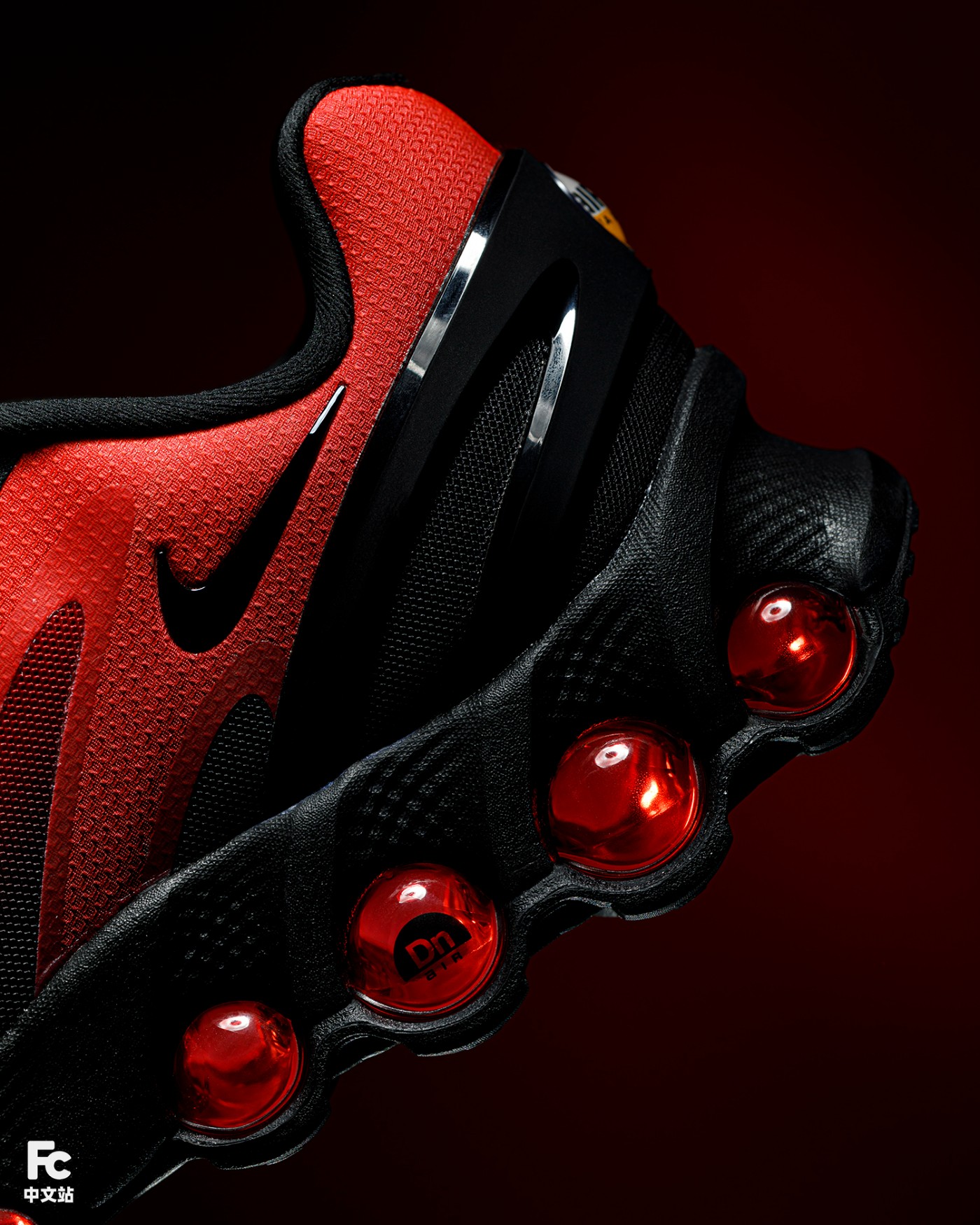 Air Max Dn8 鞋款后部的 Air 气垫由两个加压气室组成,每个加压气室包含两根管状气柱。