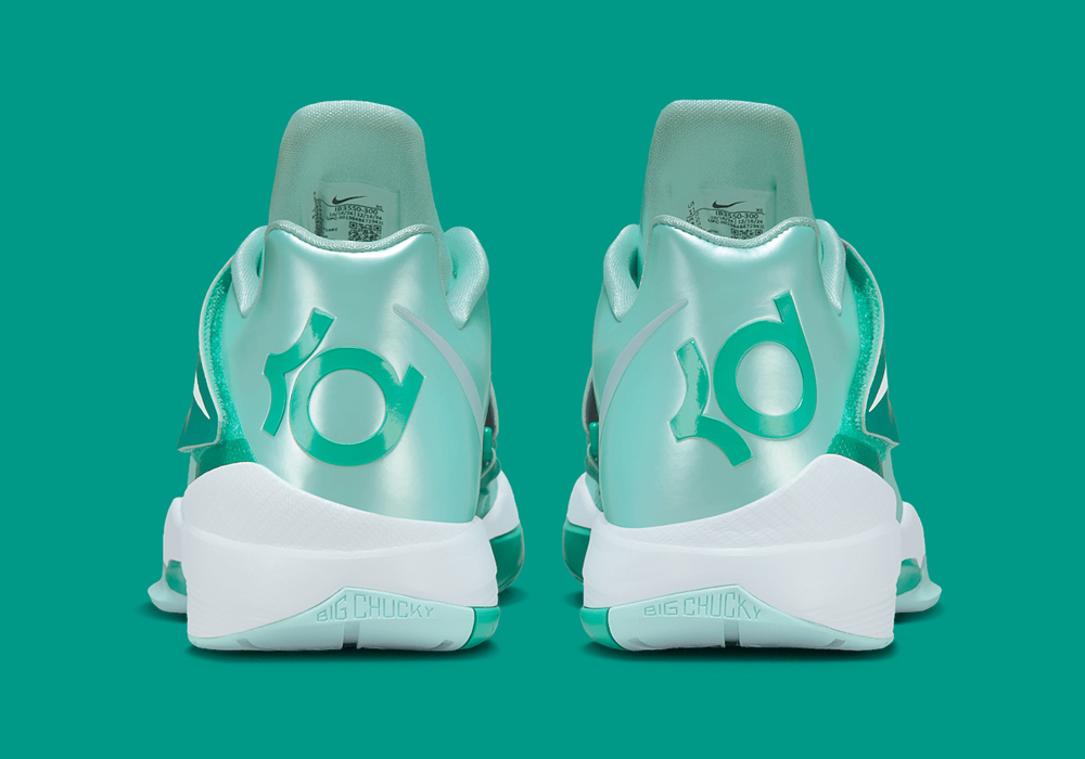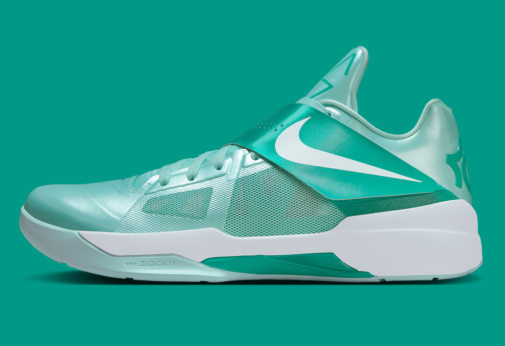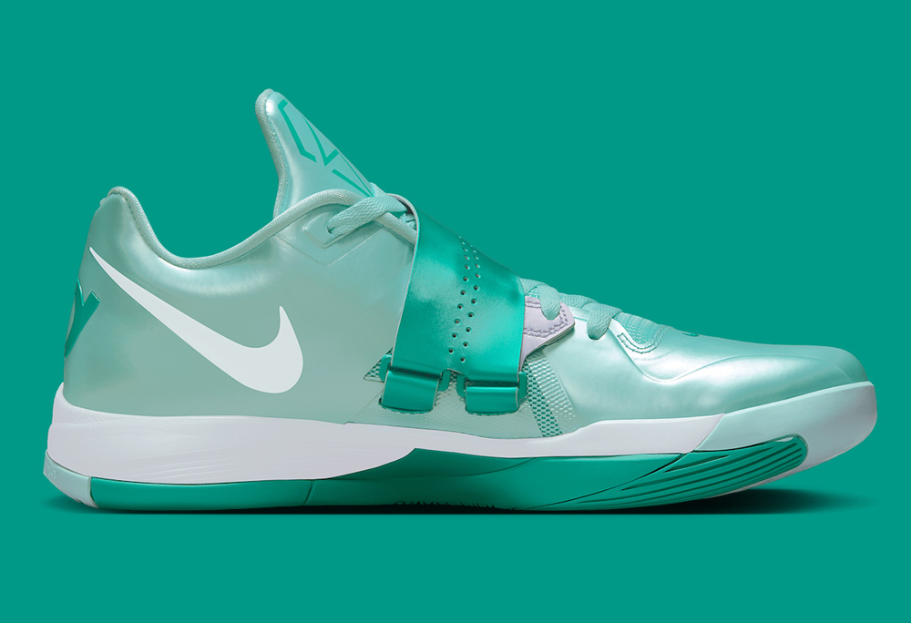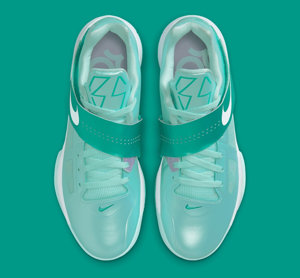 鞋款以清爽的金属薄荷绿呈现,颜值在 KD4 家族中都算得上的一股清流。