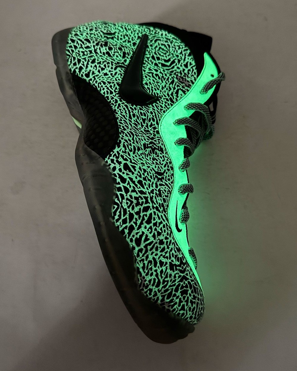 继此前「洋基喷」、「AJ12 测试样鞋」等稀有鞋款展示后,近日又晒出一款前所未见的 Nike Air Foamposite Pro 「爆裂夜光泡」样品,着实让人猝不及防!