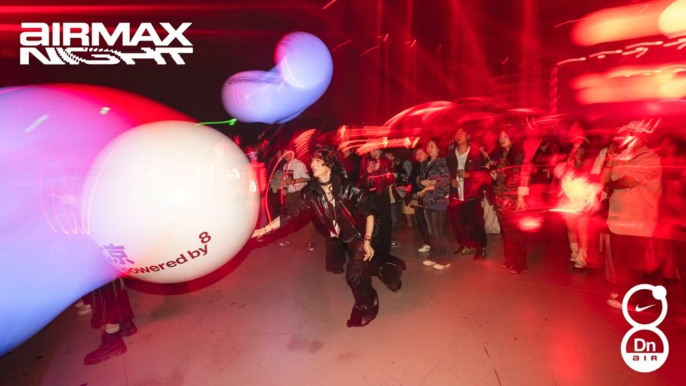 从 3 月起,Nike 携手青年先锋文化社群,在北京、成都、上海、广州四座城市陆续开启「Air Max Night」系列活动,致敬 Air Max 背后不断创新的实验精神,激励更多年轻人从中汲取灵感,用异想探索未知边界!