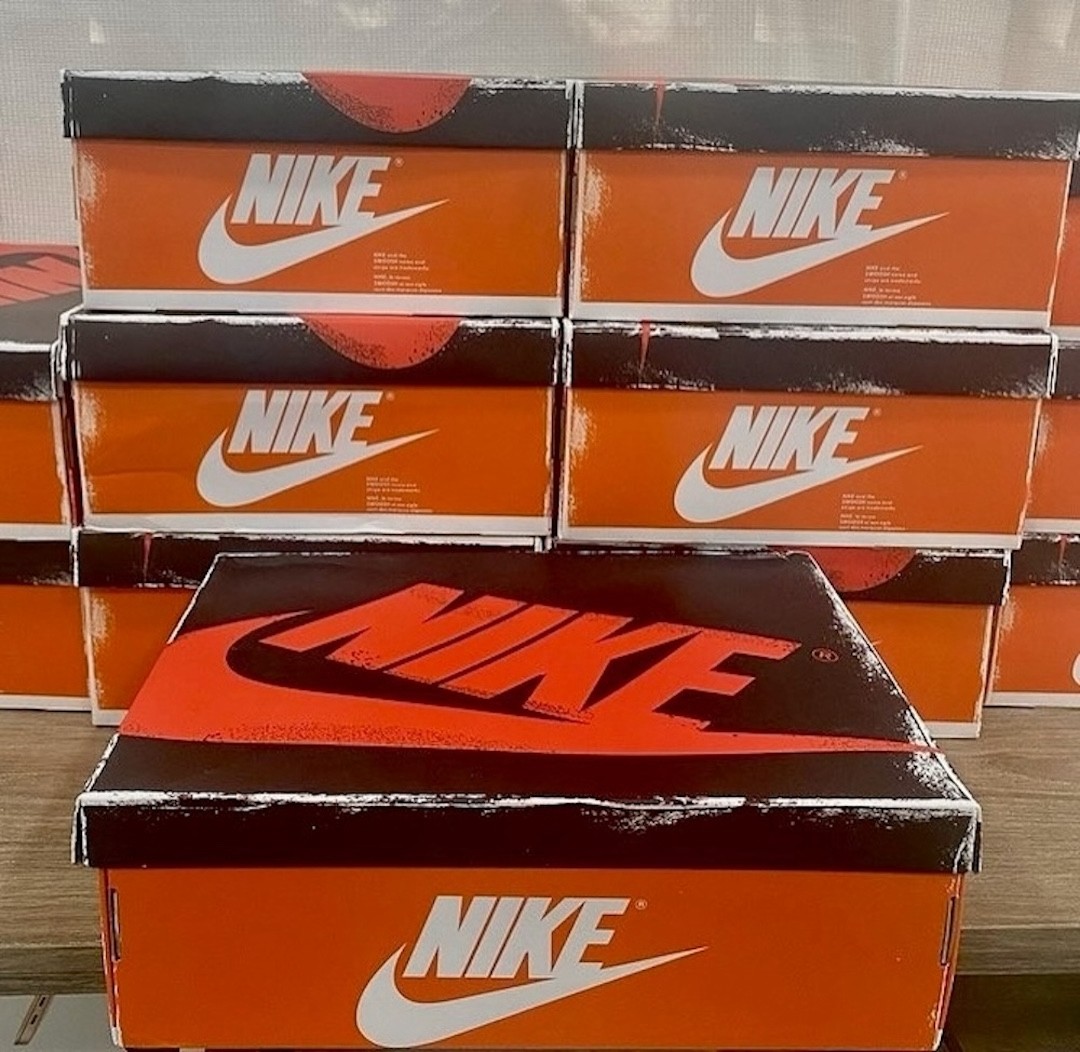 鞋盒的外观也得到确认,与此前渲染图效果一样,是黑盖橙盒,和「芝加哥 AJ1」完全相反。