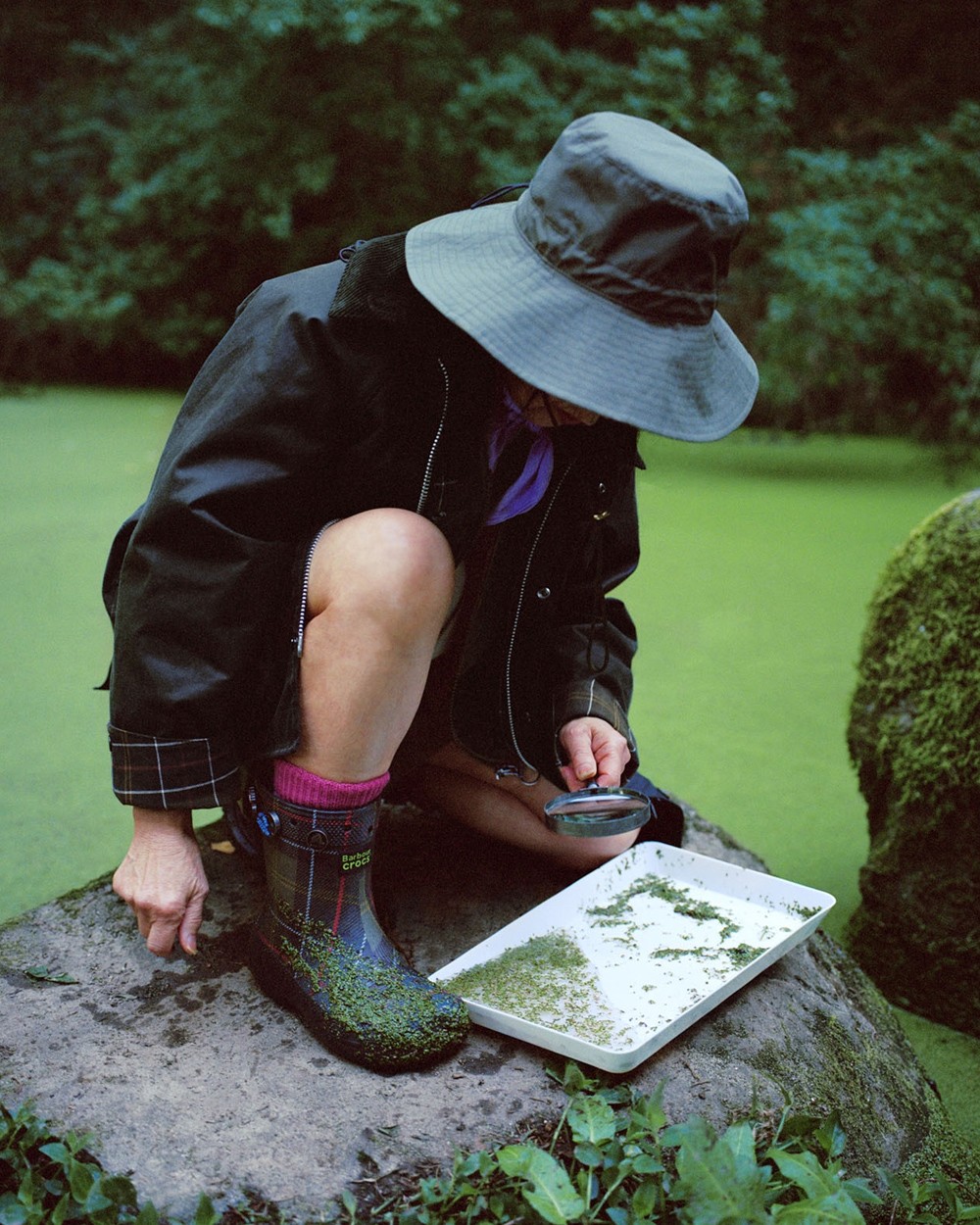 均采用 Barbour 标志性的橄榄绿色调与经典格纹印花设计,其中惠灵顿洞洞靴专为雨天打造,鞋帮处搭配定制款金属与 PVC 材质鞋花,兼具实用性与时尚美感。