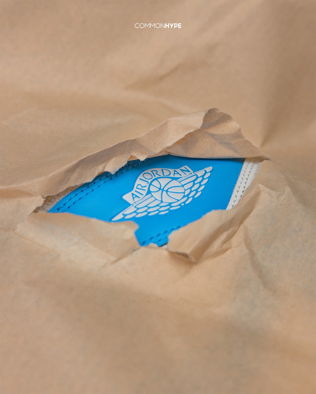 延续初代 Air Jordan 1 的北卡蓝灵魂,鞋身采用标志性白、蓝撞色设定。