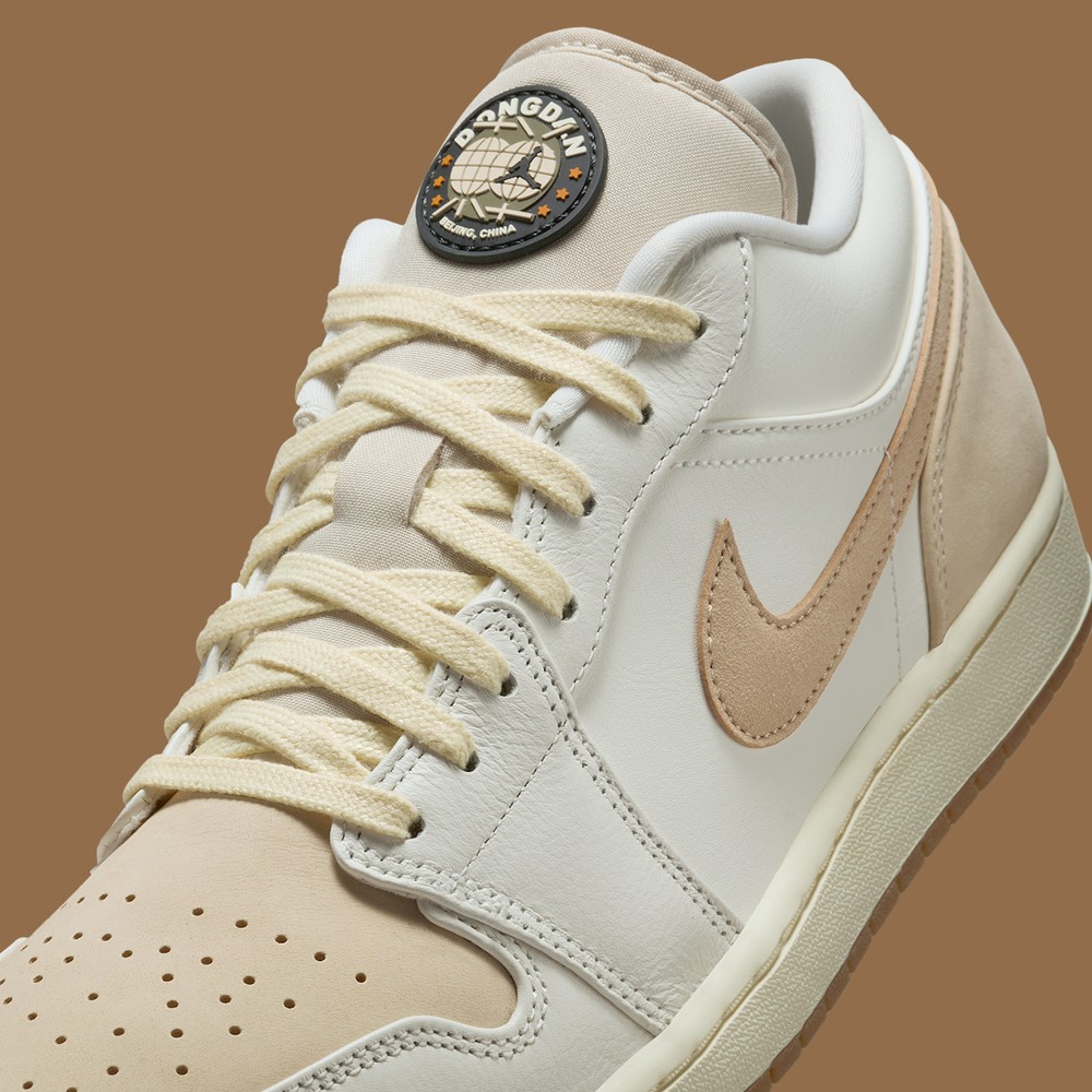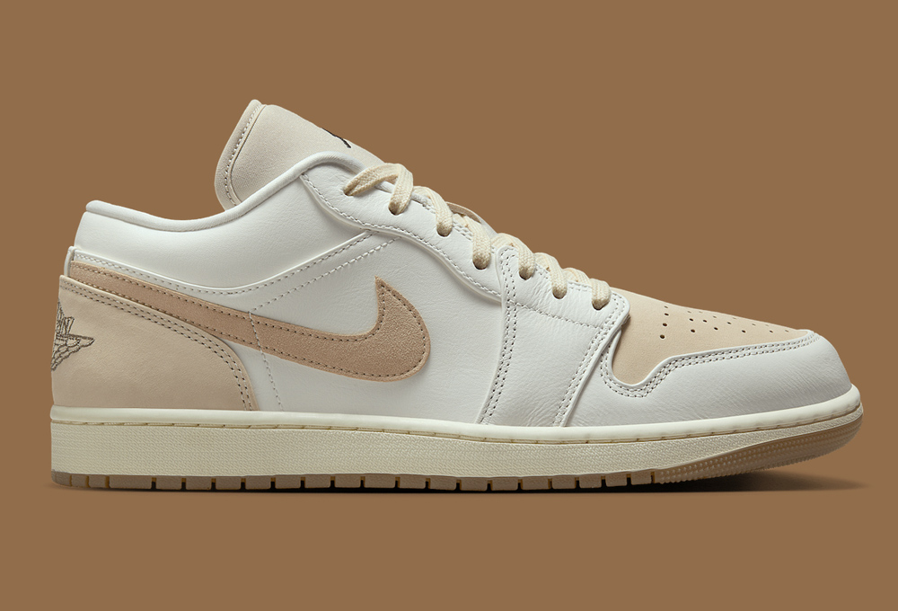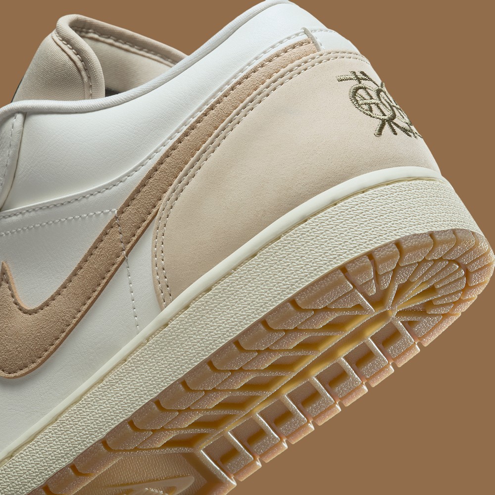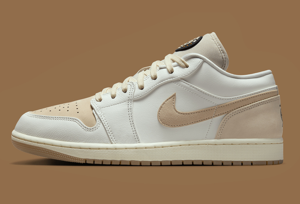 其中 AJ1 Low 鞋面以白色和卡其色覆盖,通过麂皮材质提升质感层次与规格。
